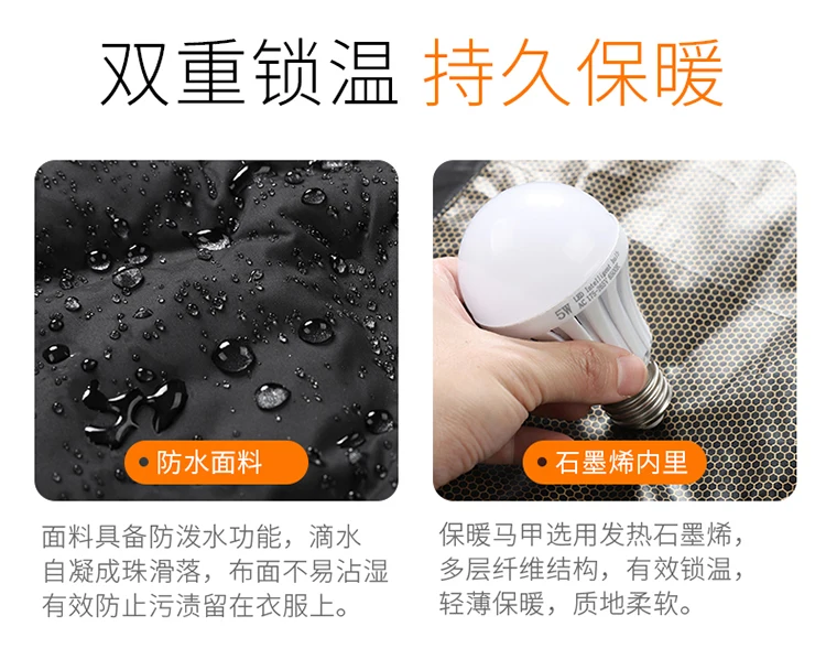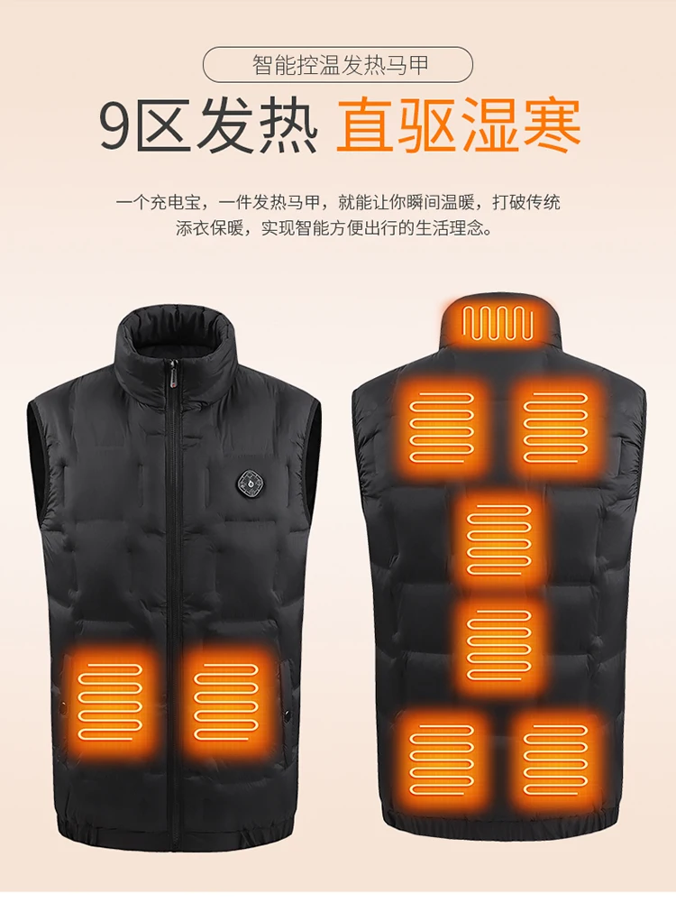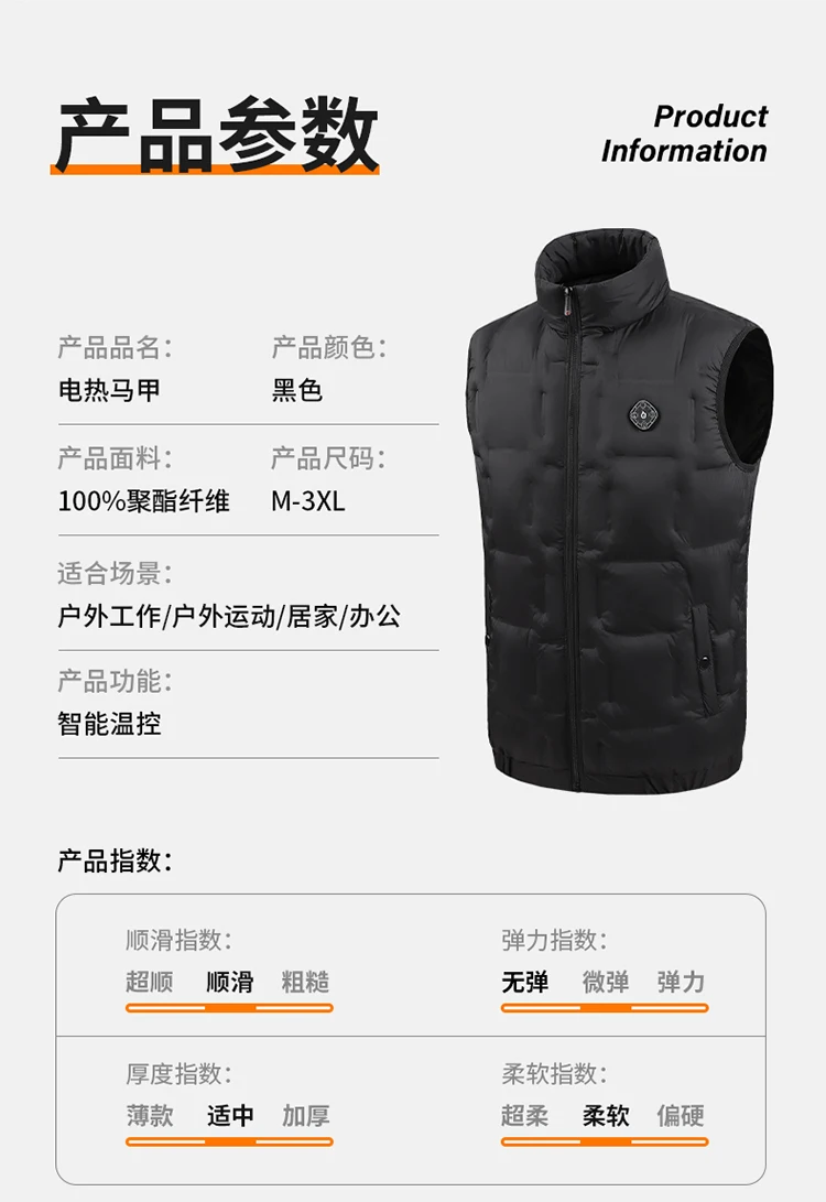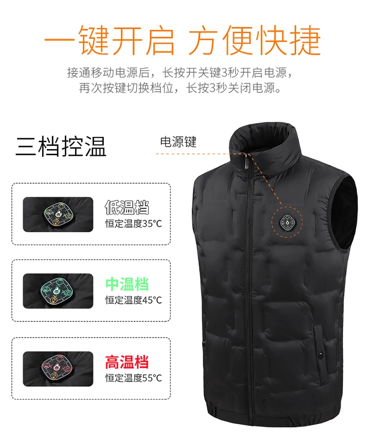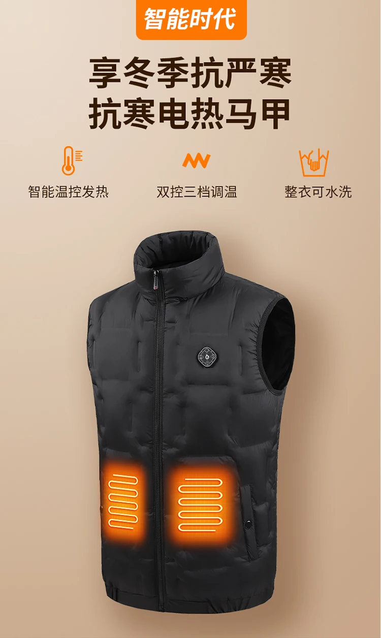 Heated Vest Jackets for Men Winter Casual Outer Wear with Turtleneck Patterned Polyester and Corduroy 5V Logo Decoration