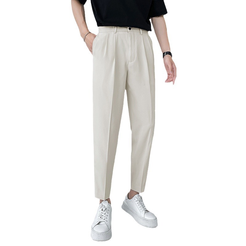 2024 Men’s High-End Korean Slim Fit Business Suit Single Breasted Zipper Fly Pants Light Familiar Custom Print Worsted Foreign