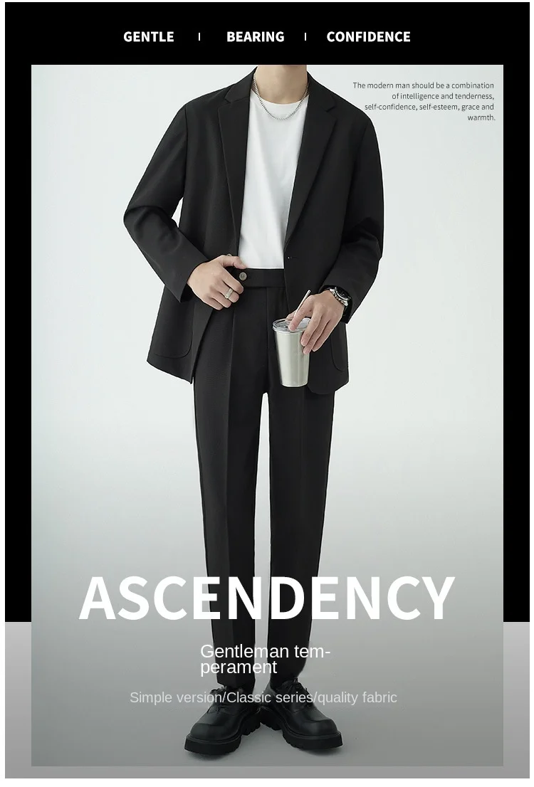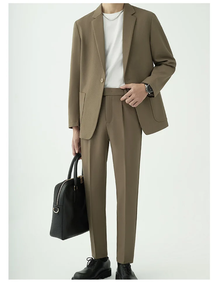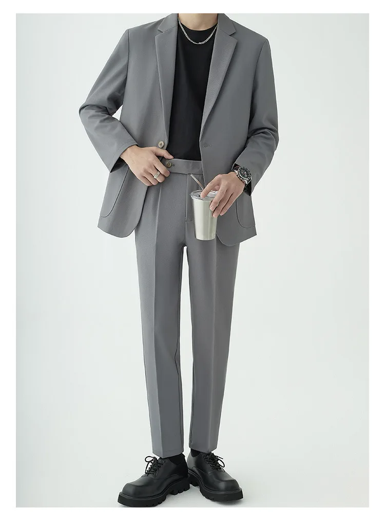 • 2024 Men’s High-End Korean Slim Fit Business Suit Single Breasted Zipper Fly Pants Light Familiar Custom Print Worsted Foreign