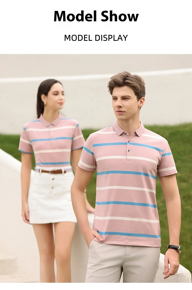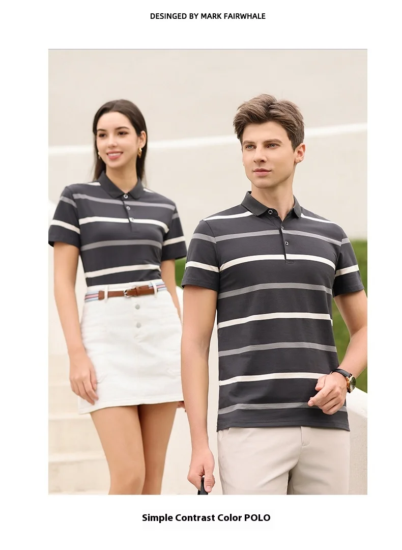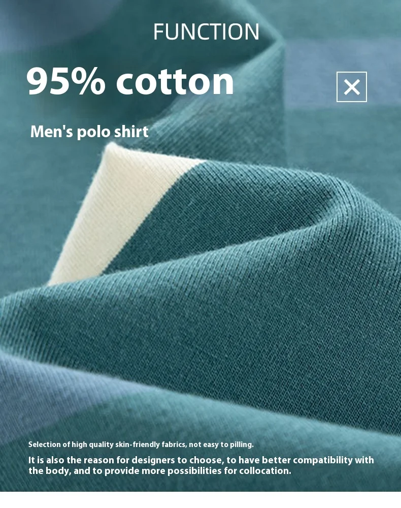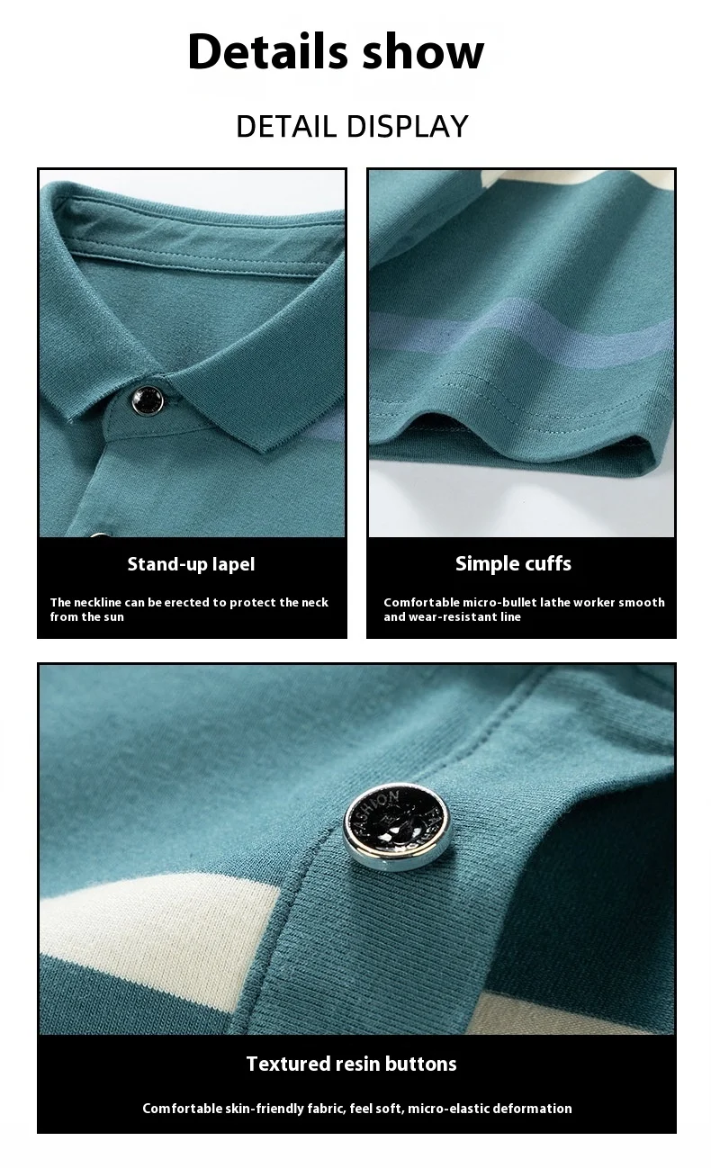 High Quality Men’s 100% Cotton Striped Polo Shirt Summer Thin Business Lapel Embroidered Short-Sleeved T-Shirt Button Decoration