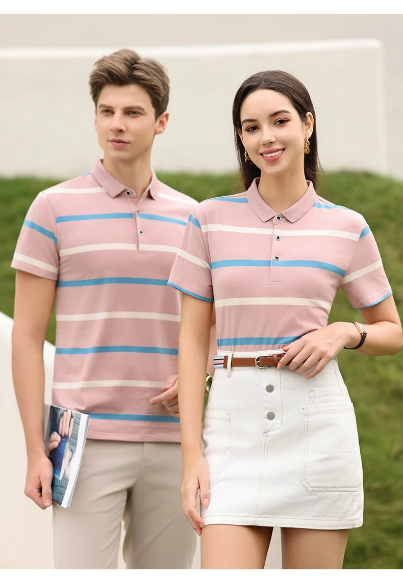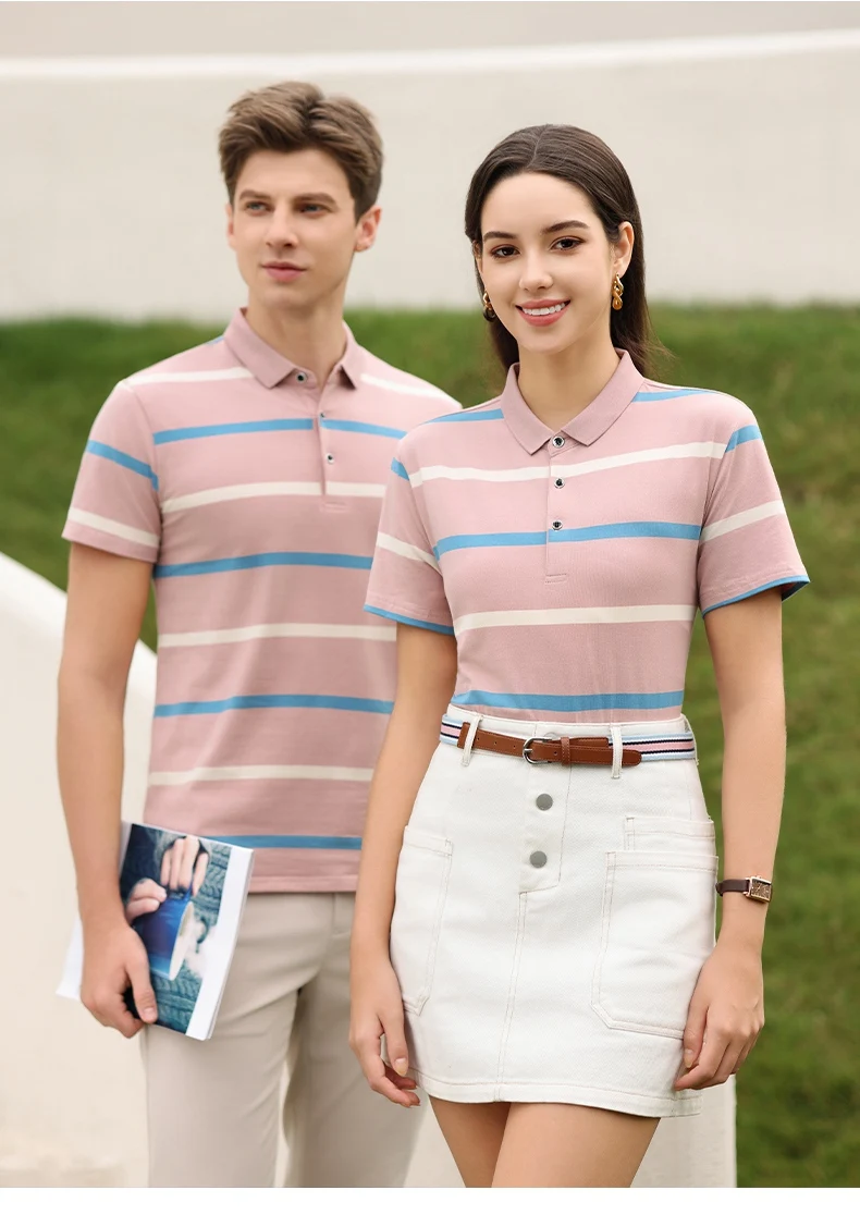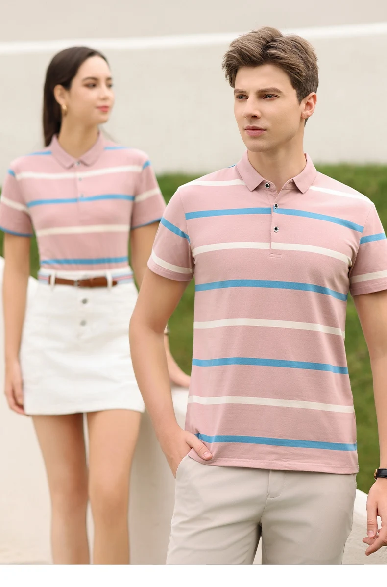 High Quality Men’s 100% Cotton Striped Polo Shirt Summer Thin Business Lapel Embroidered Short-Sleeved T-Shirt Button Decoration