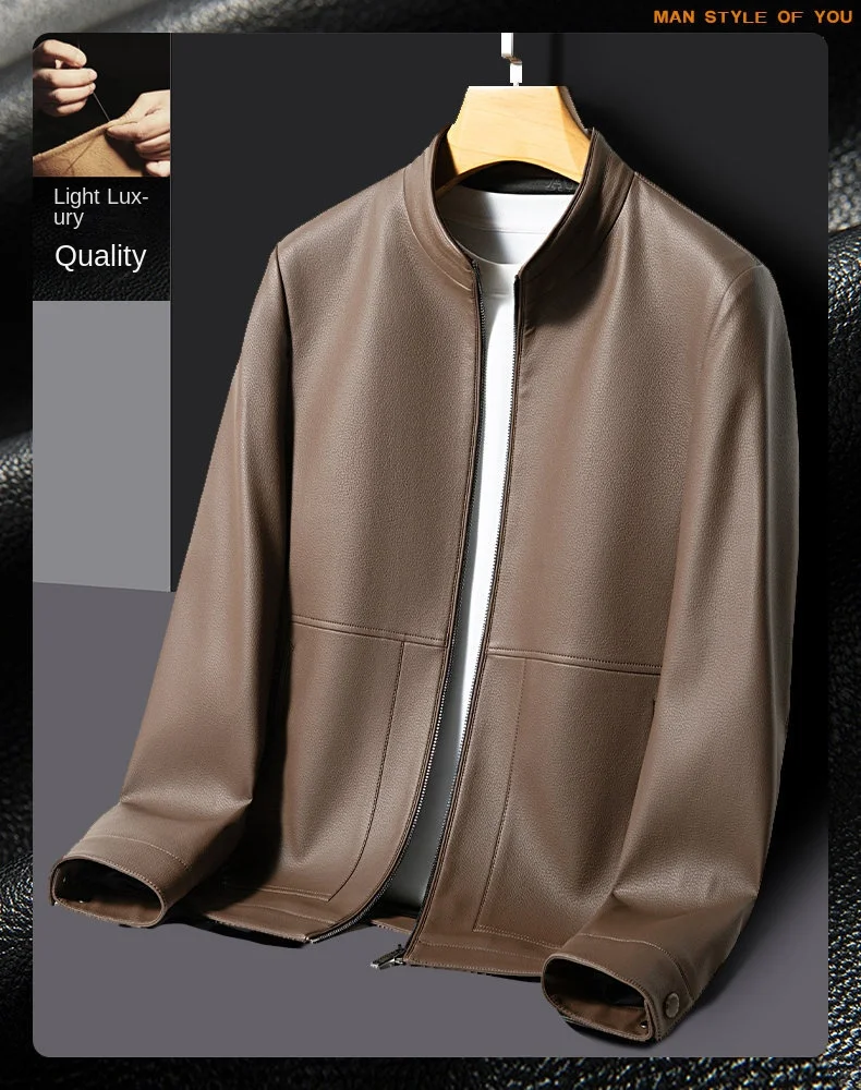 High Quality Men’s Wool Leather Varsity Jacket Stand Windproof Cotton Filled Fur Decoration Casual Outdoor Wholesale Available