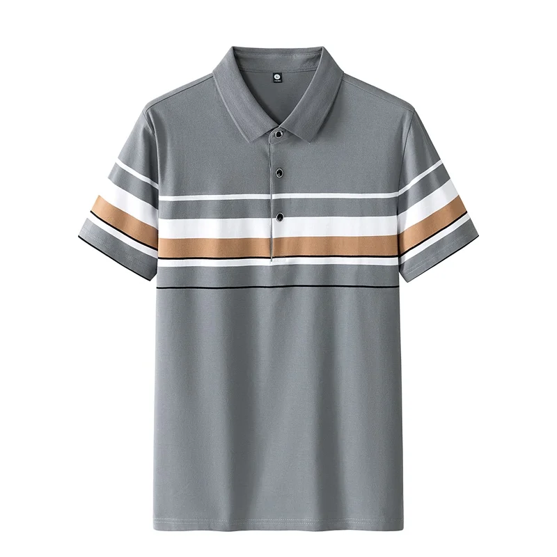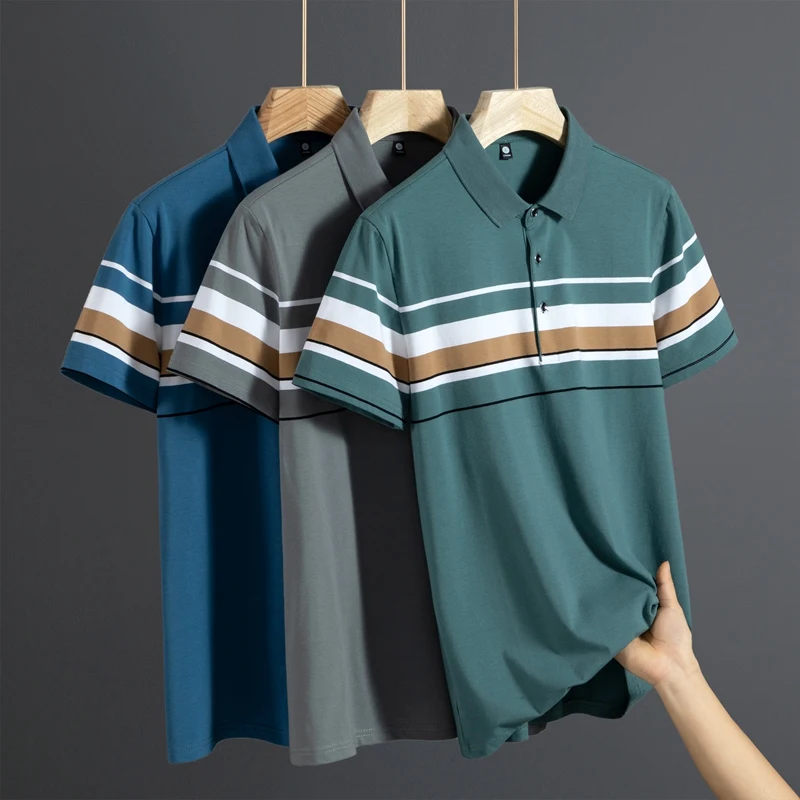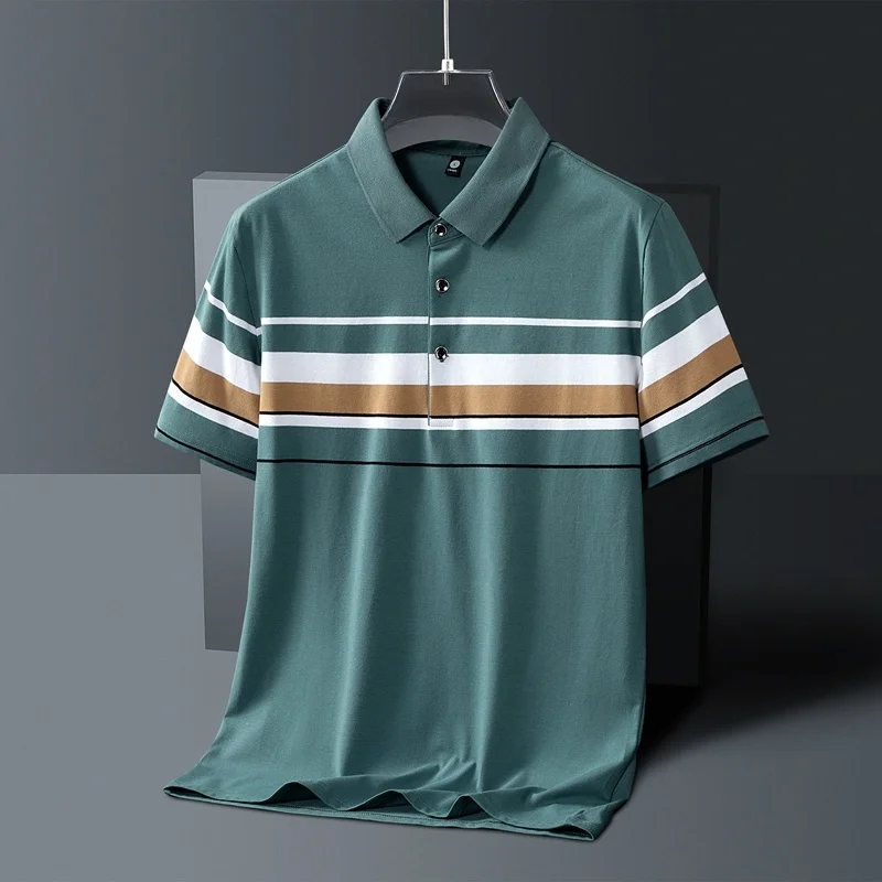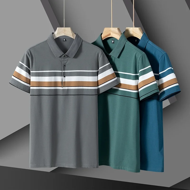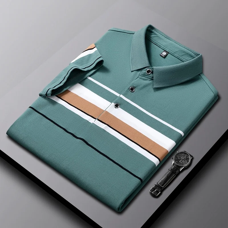 High Quality Summer Men’s Half-Sleeve Polo Shirt Trendy Striped Lapel Short-Sleeved T-Shirt Casual Business Print Jersey Golf