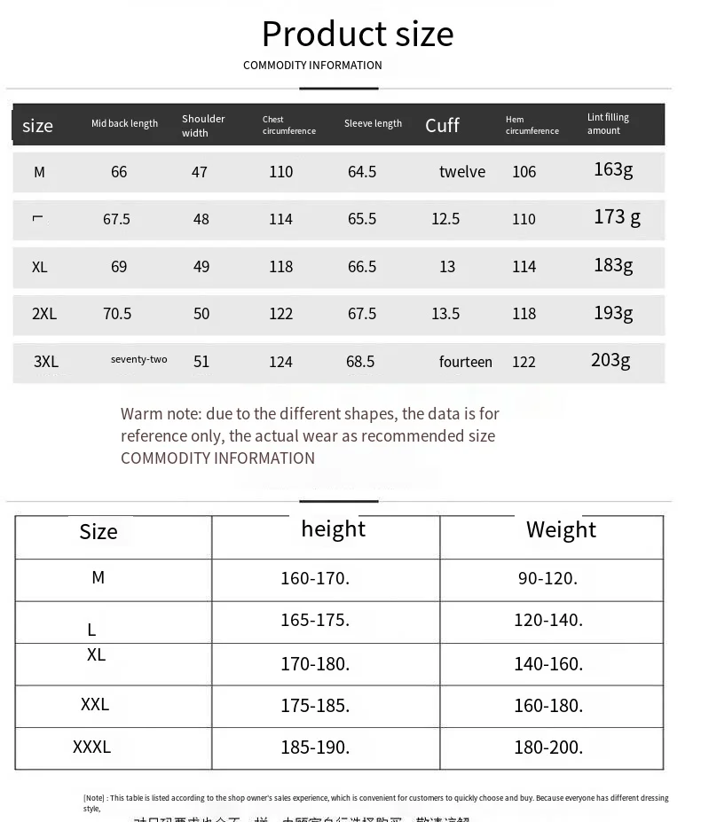 | Size | M, L, XL, 2XL, 3XL |