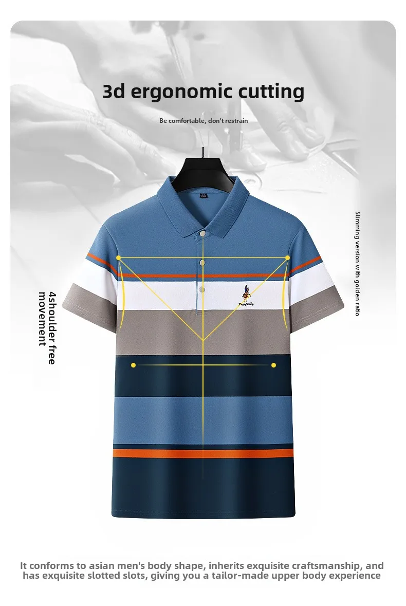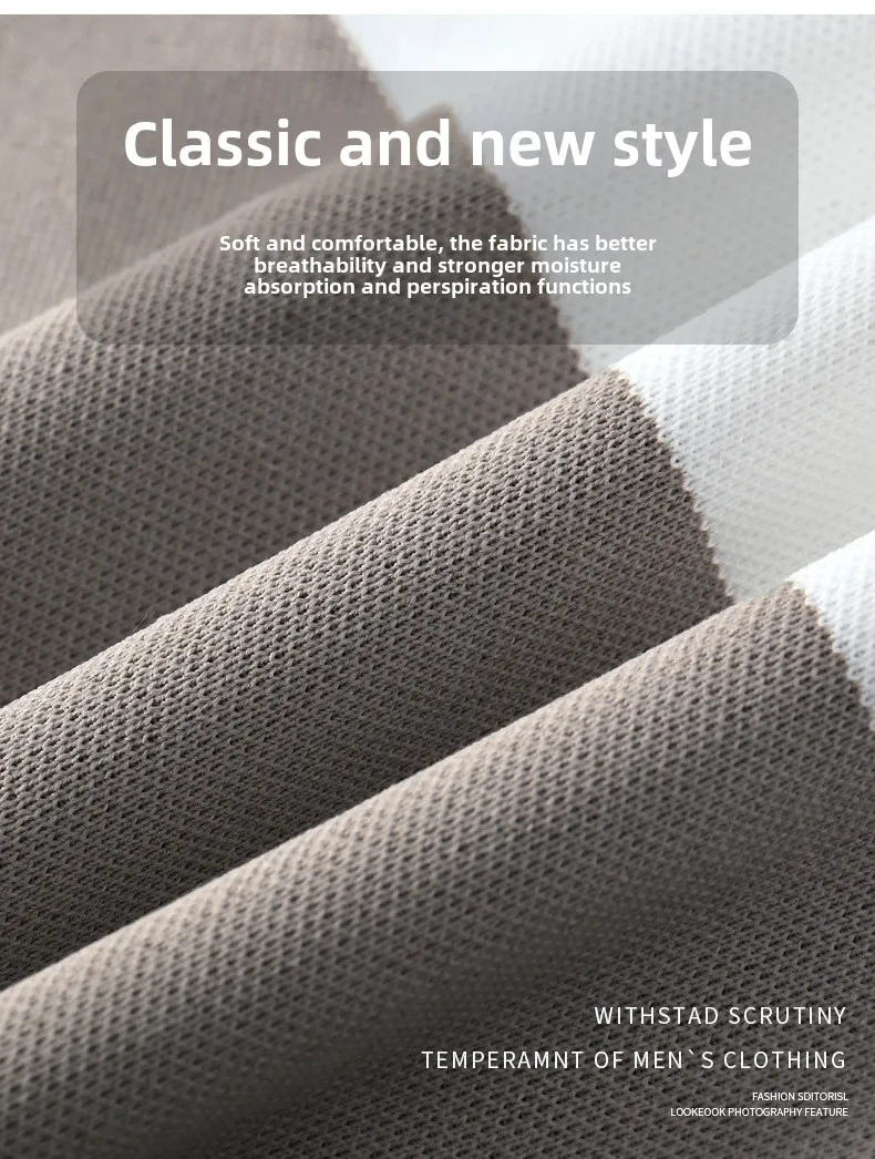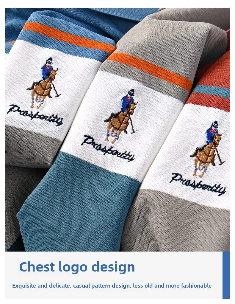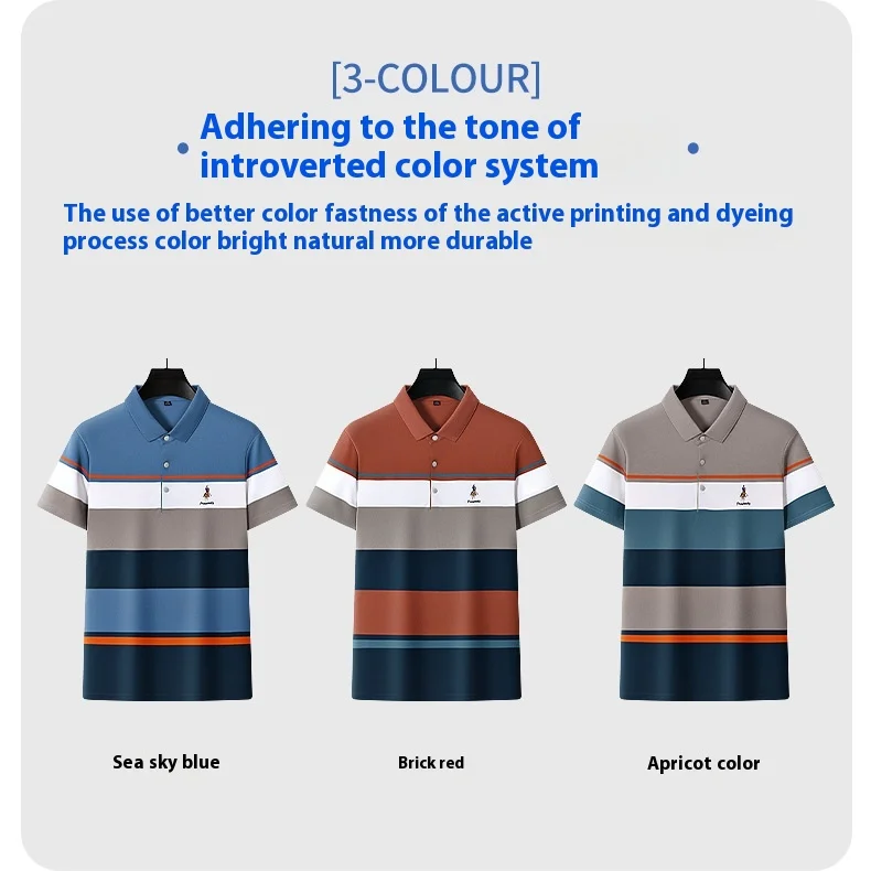 High Quality Young Men’s Half-Sleeve Velour T-Shirt Striped Collar Embroidered Anti-Pilling Anti-Wrinkle Compressed Solid