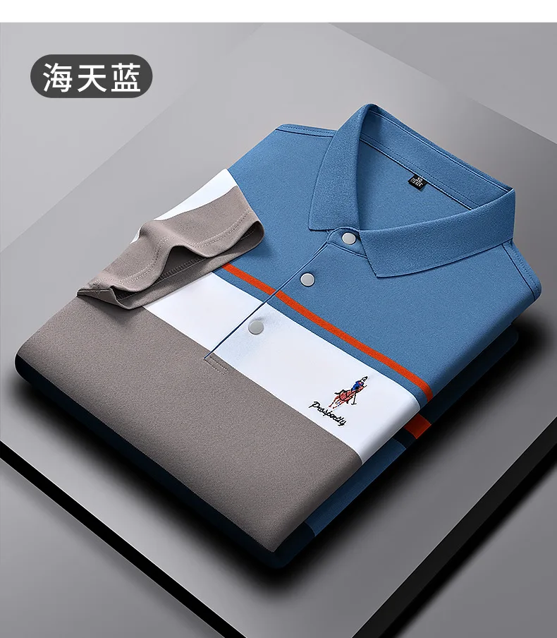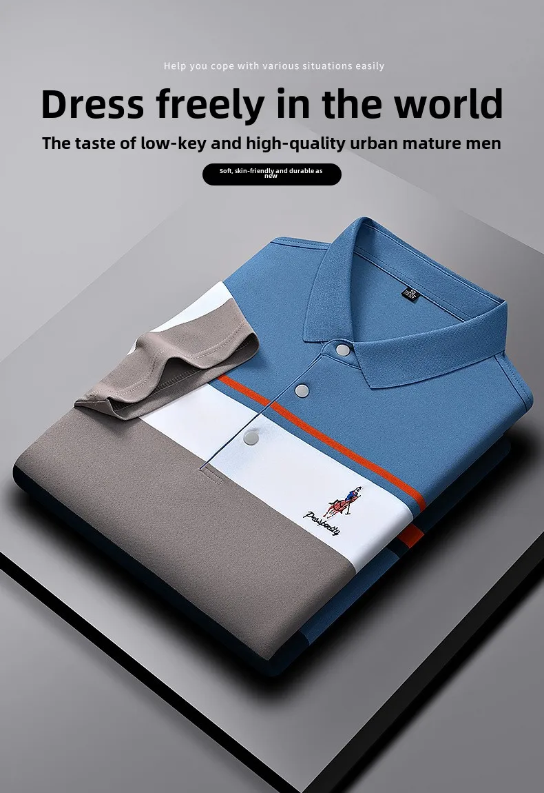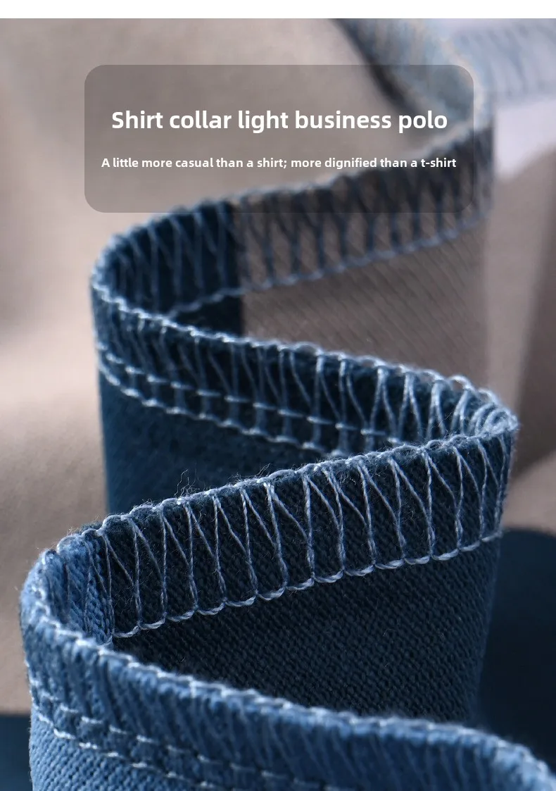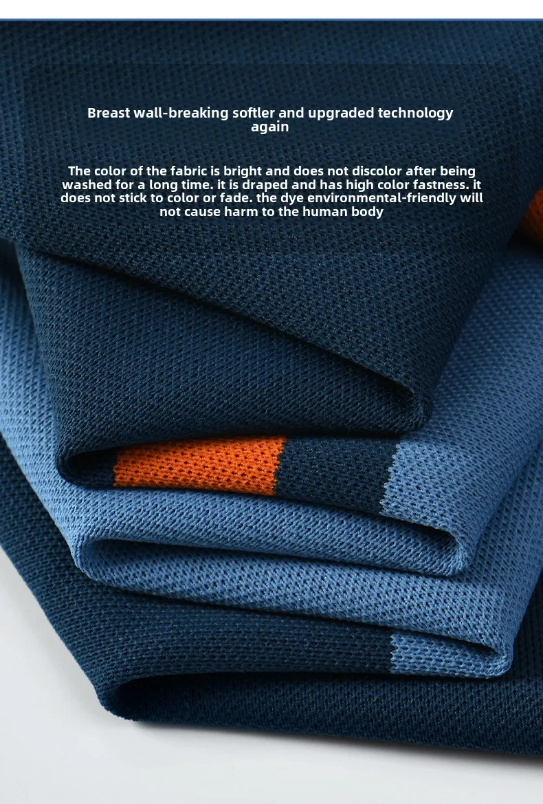 High Quality Young Men’s Half-Sleeve Velour T-Shirt Striped Collar Embroidered Anti-Pilling Anti-Wrinkle Compressed Solid