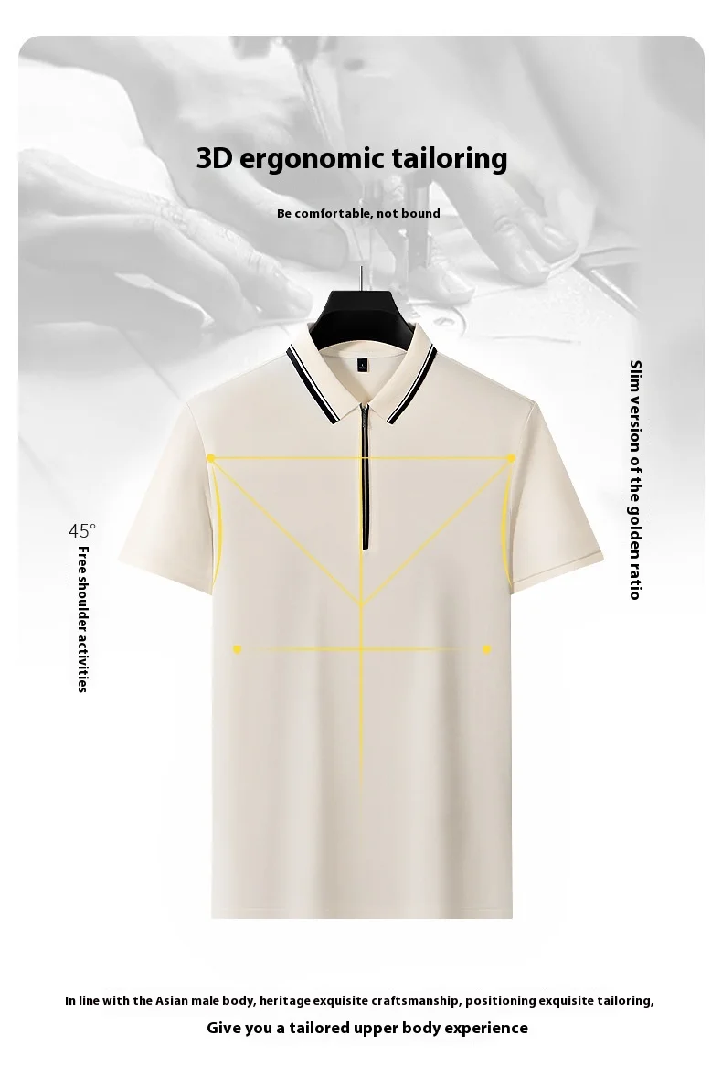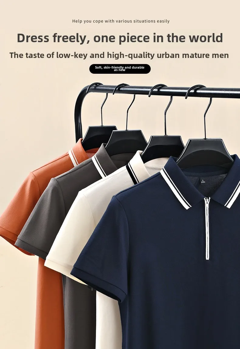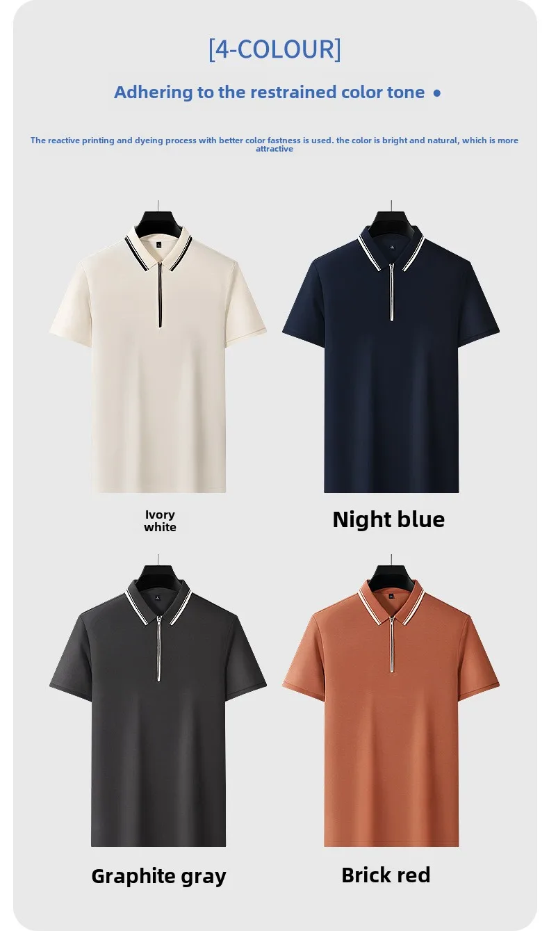 Hot-Selling Men’s Ice Silk for Polo Shirt XL Plus Size Striped Knitted T-Shirt Breathable Collar Embroidery Light-Colored Print