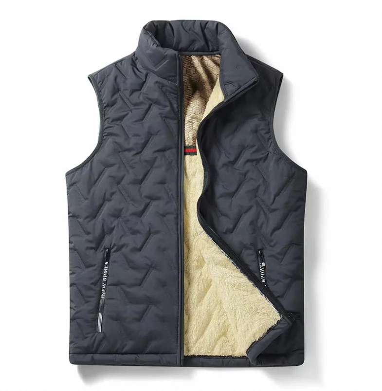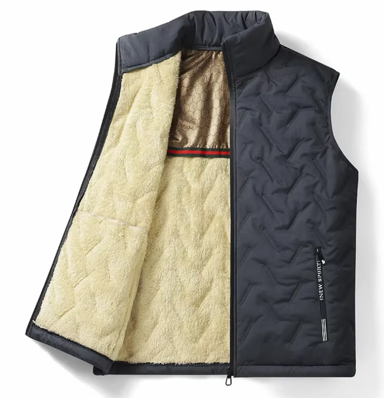 Hot Selling Winter 2024 Men Casual Lambswool Thick Warm Coats Stand Collar Windproof Sleeveless Vest Jackets