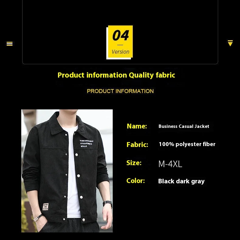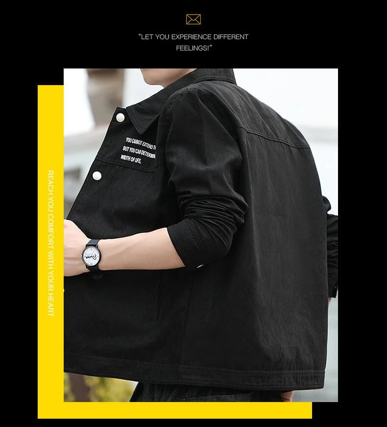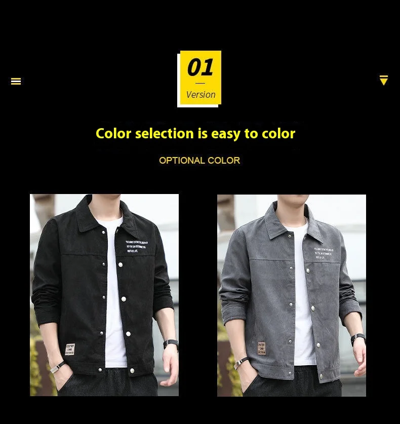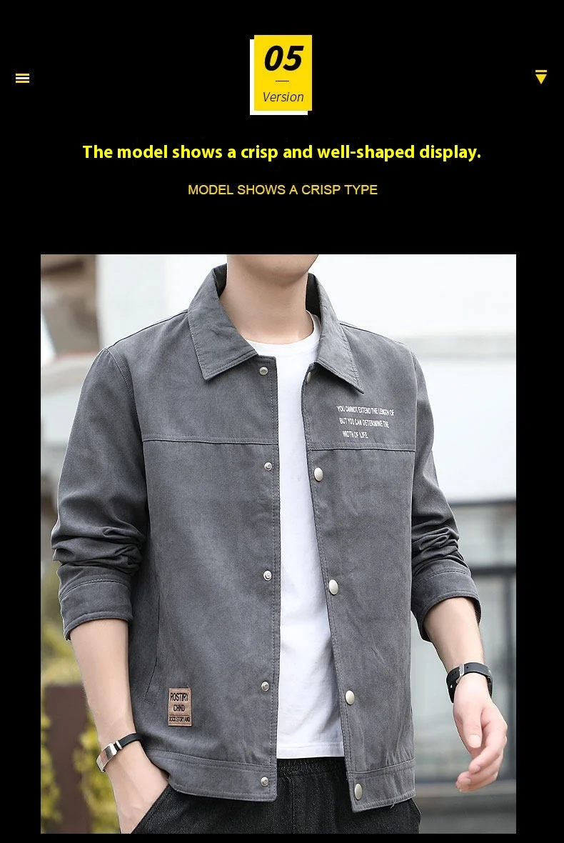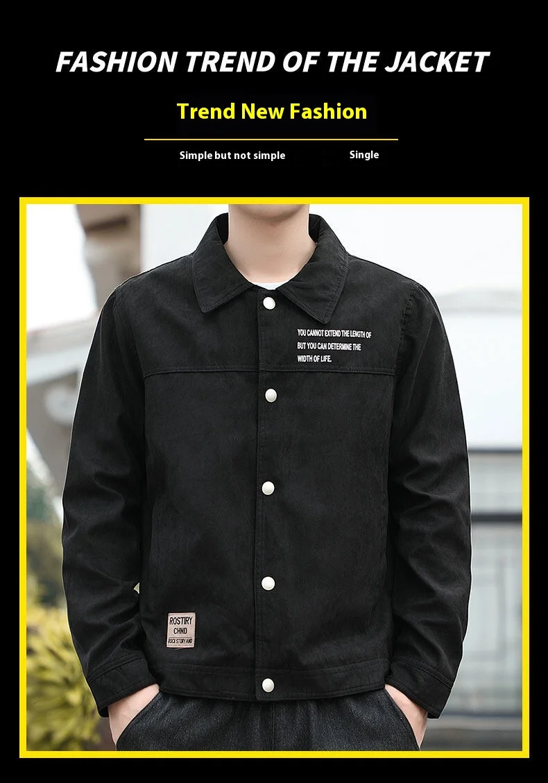K-styletrendymenjacket Men’s Slim Suede Jacket Stand Collar Long Denim Jacket Spring Autumn Button Outdoor Casual 100% Cotton