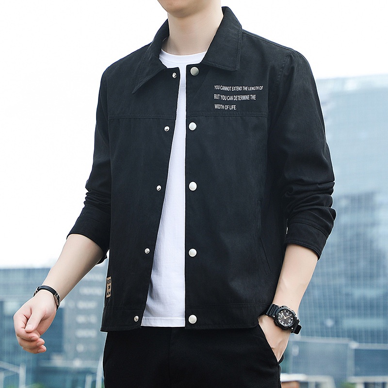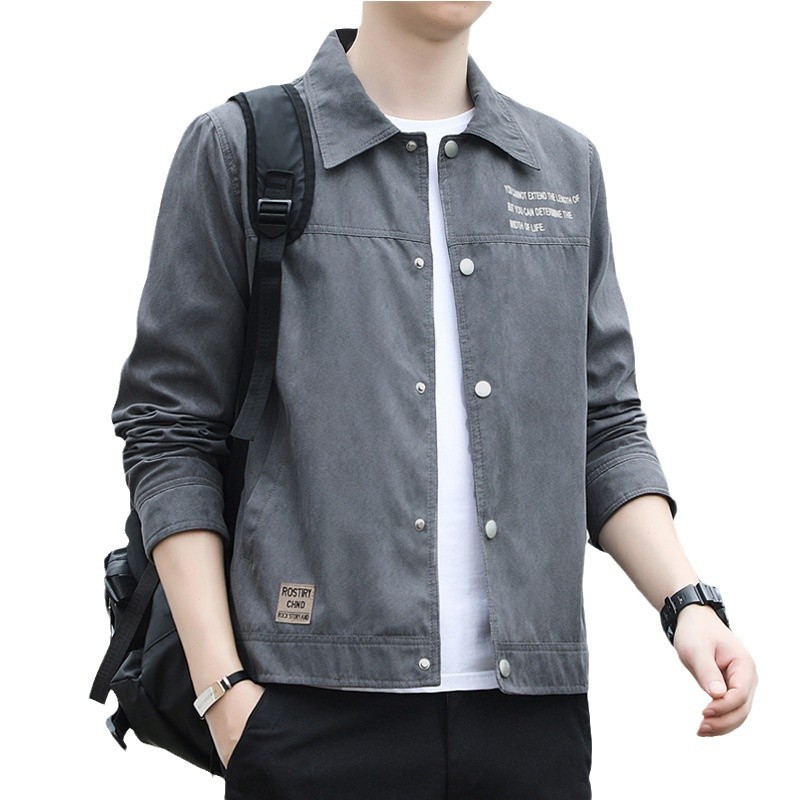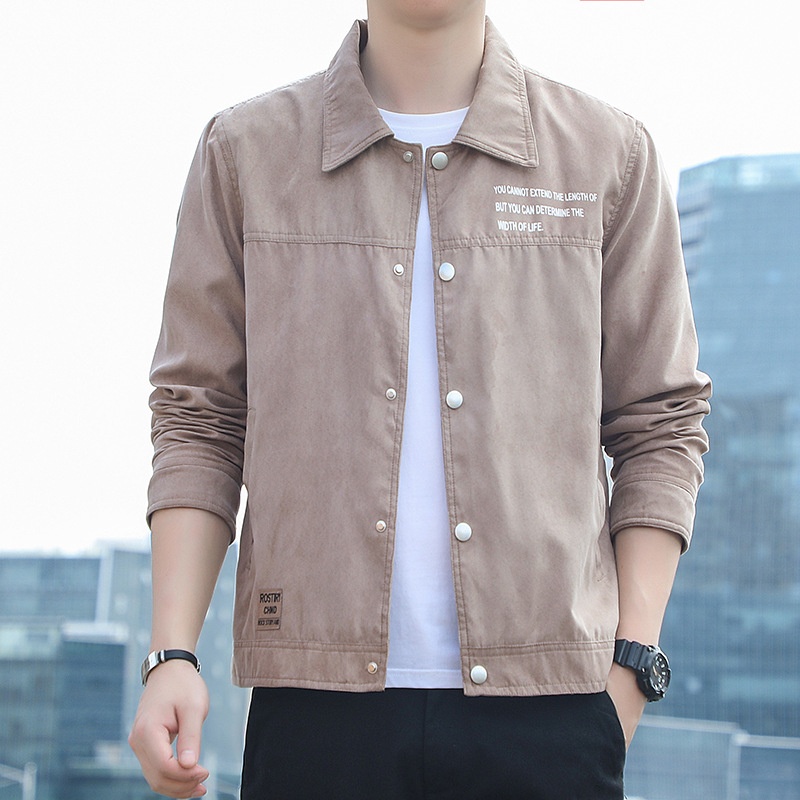 K-styletrendymenjacket Men’s Slim Suede Jacket Stand Collar Long Denim Jacket Spring Autumn Button Outdoor Casual 100% Cotton