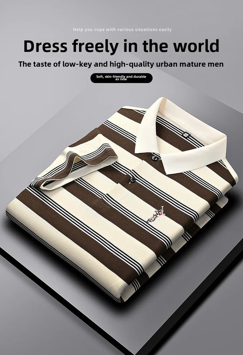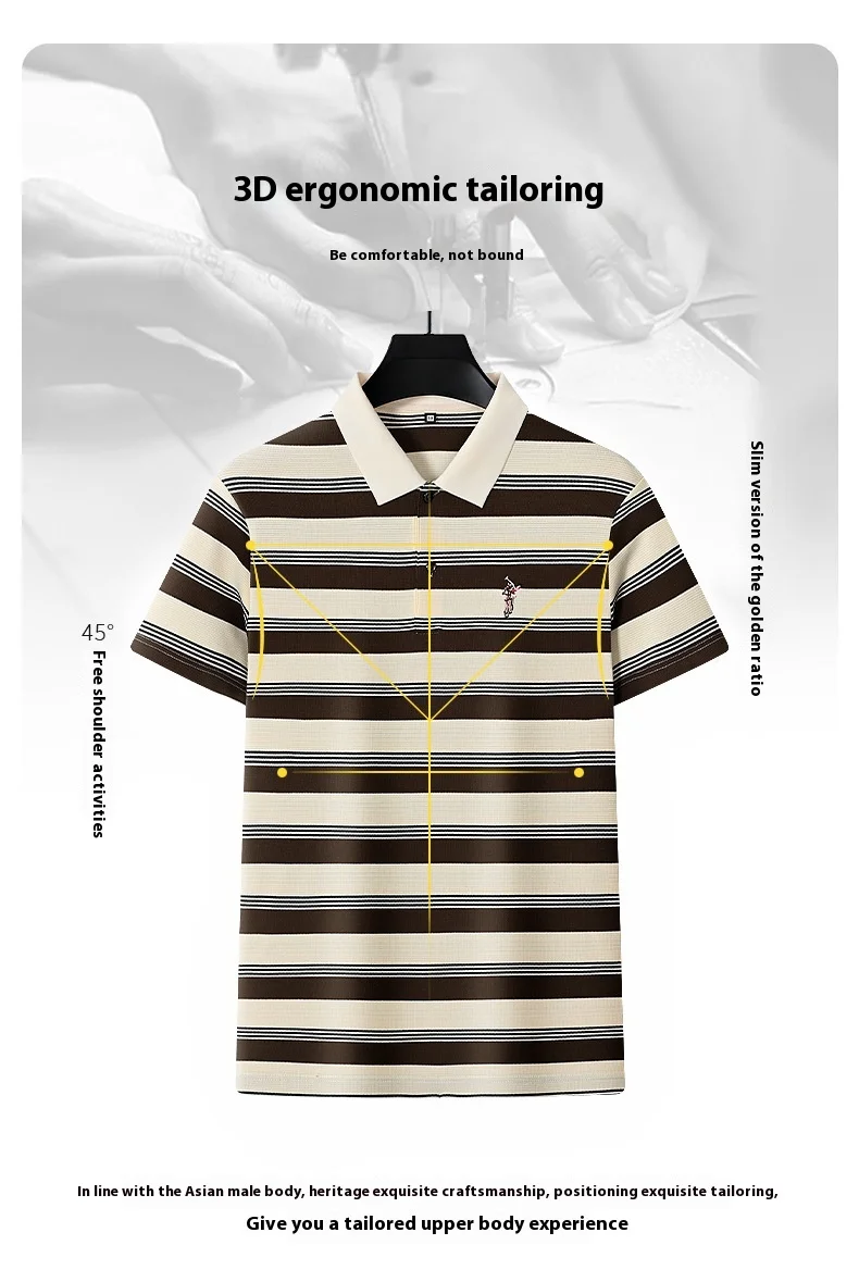 Light Luxury Men’s for Polo Shirt Short Sleeve Embroidered Color Block Woven Knitted Silk Fabric ODM Loose with Pattern Print