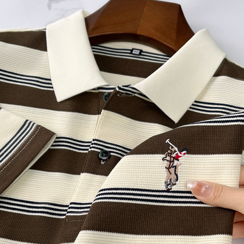 Light Luxury Men’s for Polo Shirt Short Sleeve Embroidered Color Block Woven Knitted Silk Fabric ODM Loose with Pattern Print