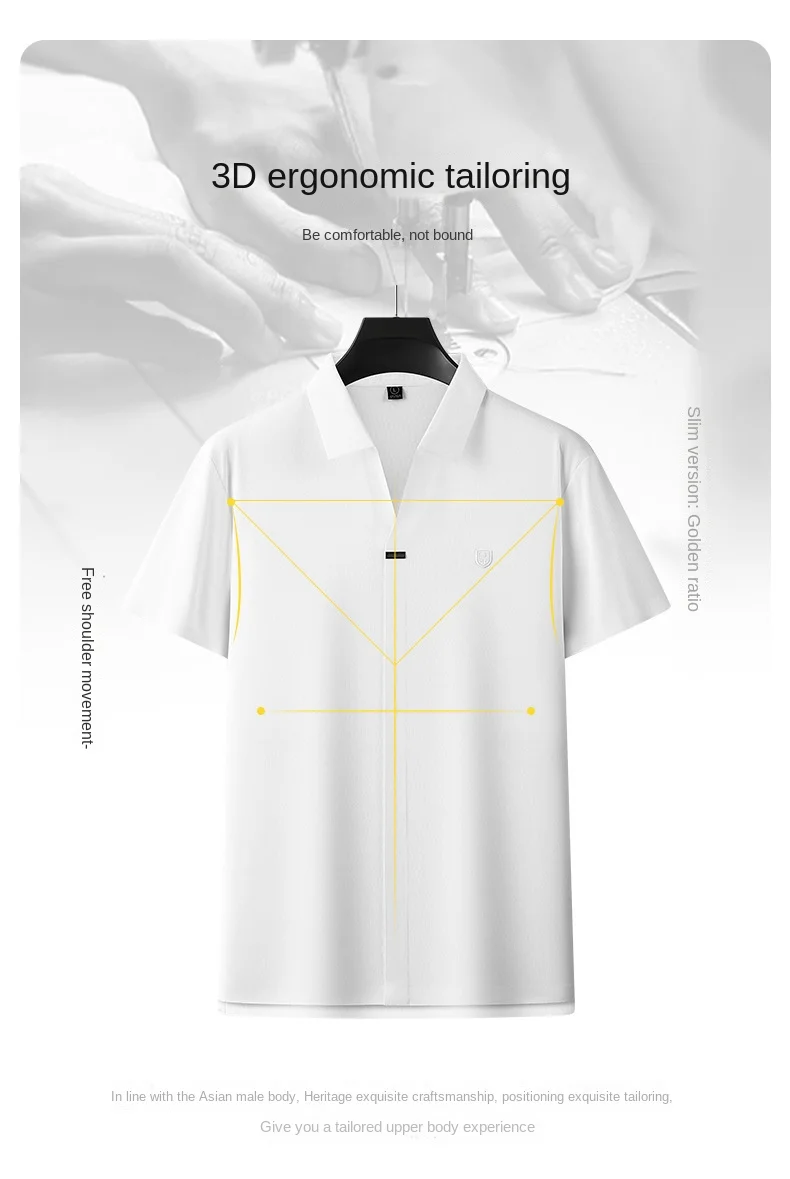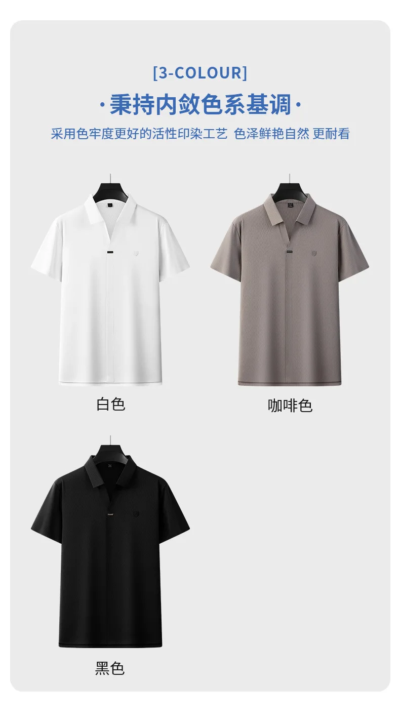 Men’s 2024 Summer New Ice Silk Striped Polo Shirt 100% Cotton Anti-Pilling Turn-Down Collar Knitted Casual Top Loose Fit