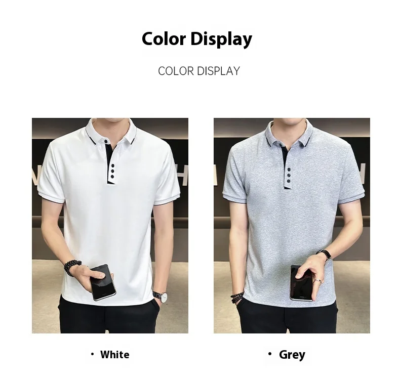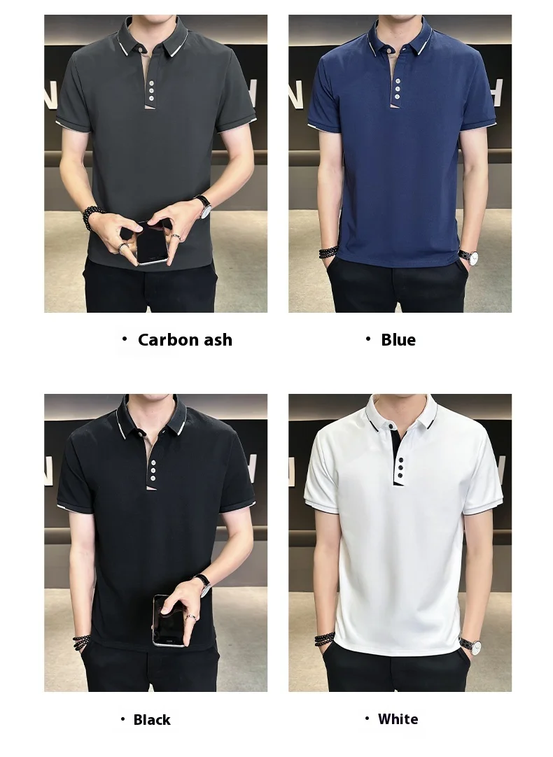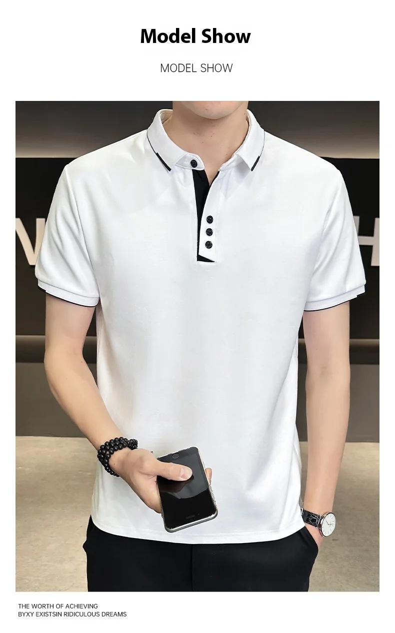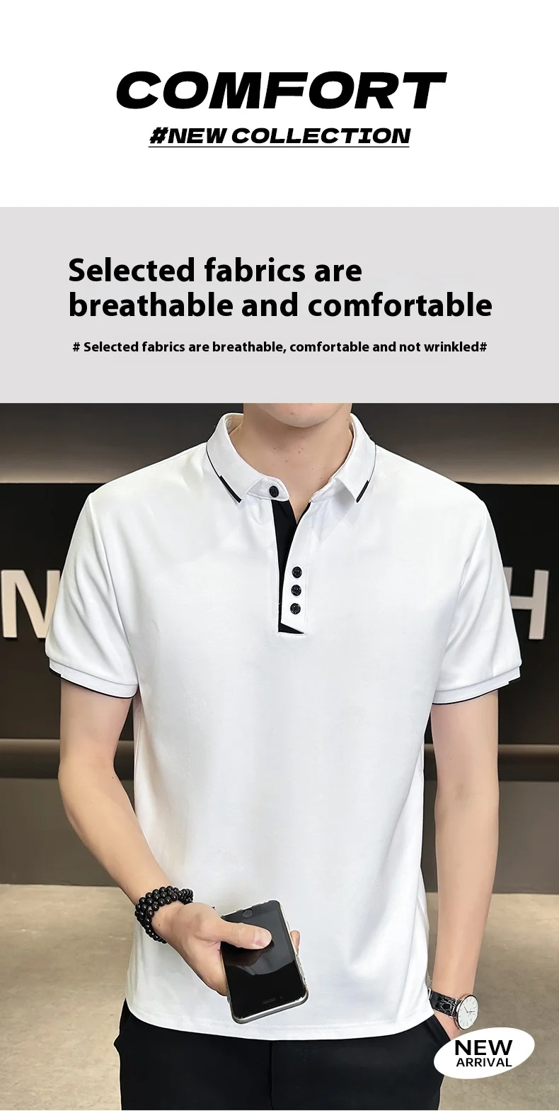 Men’s 2025 Summer High Cotton Top Short-Sleeved for Polo Shirt Anti-Pilling Button Embroidery New Lapel Design Twill Fabric