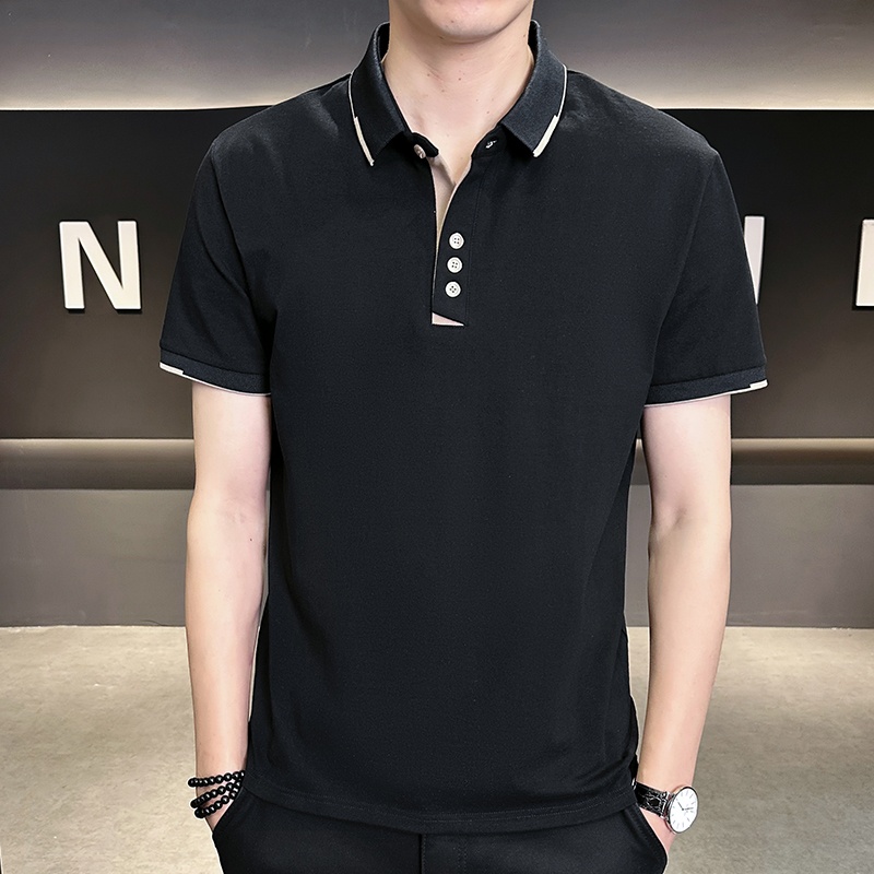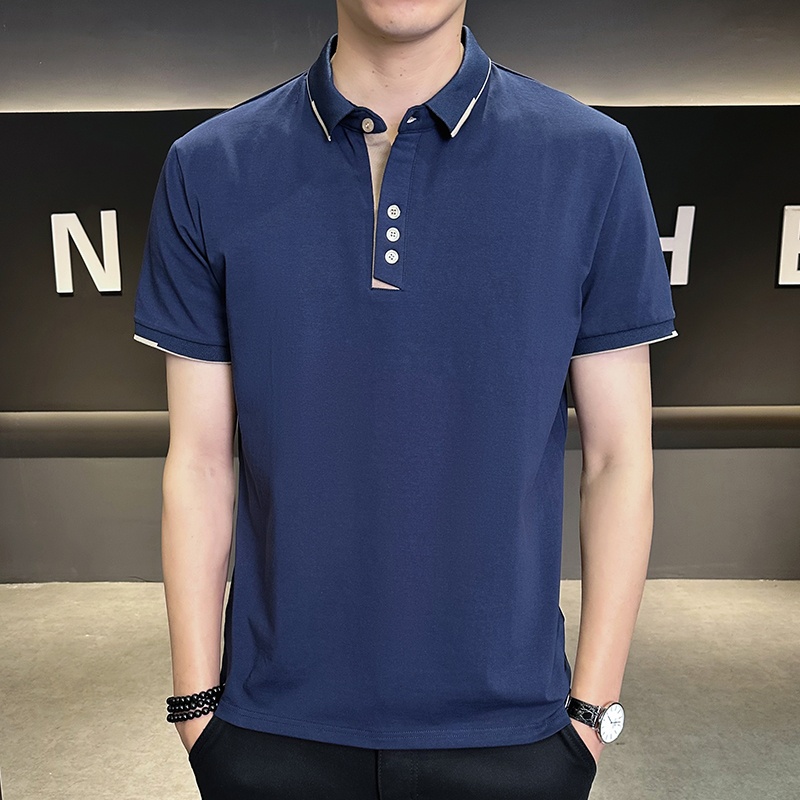 Men’s 2025 Summer High Cotton Top Short-Sleeved for Polo Shirt Anti-Pilling Button Embroidery New Lapel Design Twill Fabric