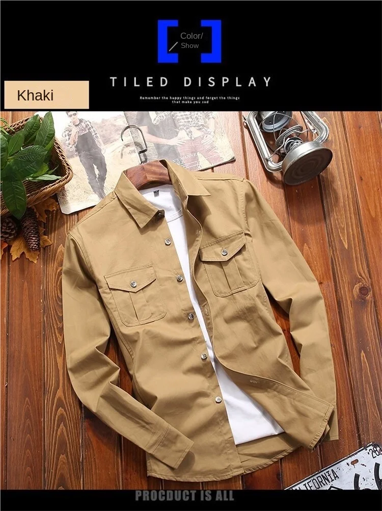 Men’s Army Green Crocheted Denim Long Sleeve Slim-Fit Shirt Pure Cotton Fashionable Casual for Summer Spring and Autumn