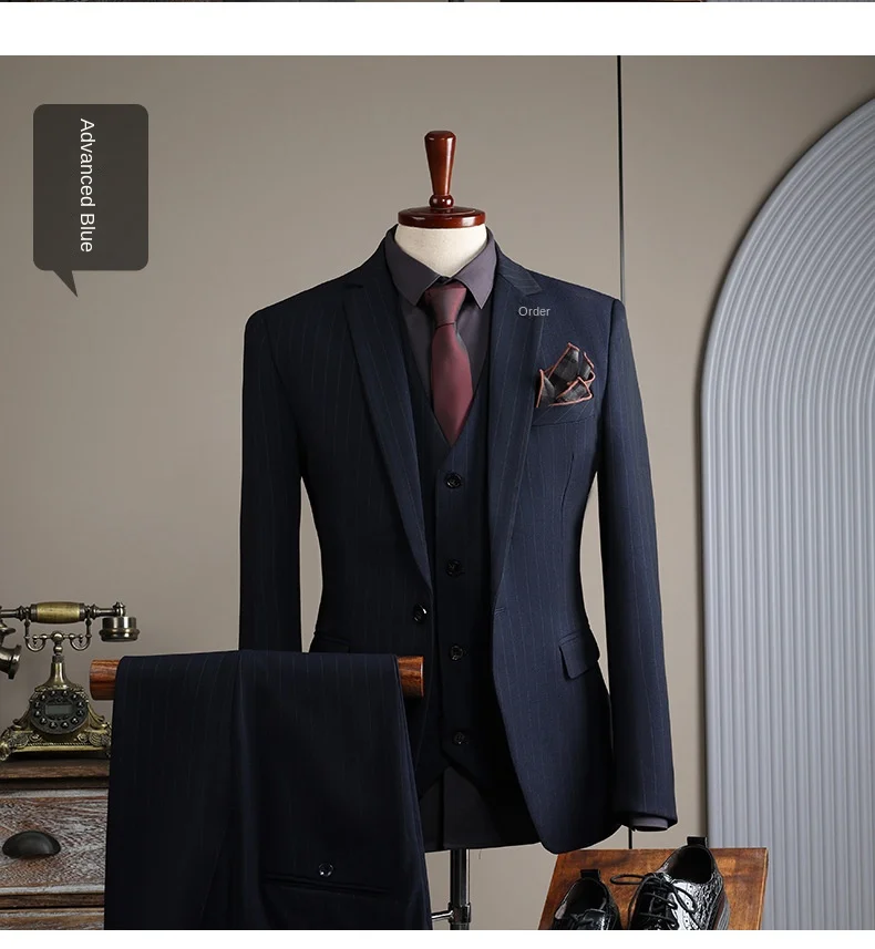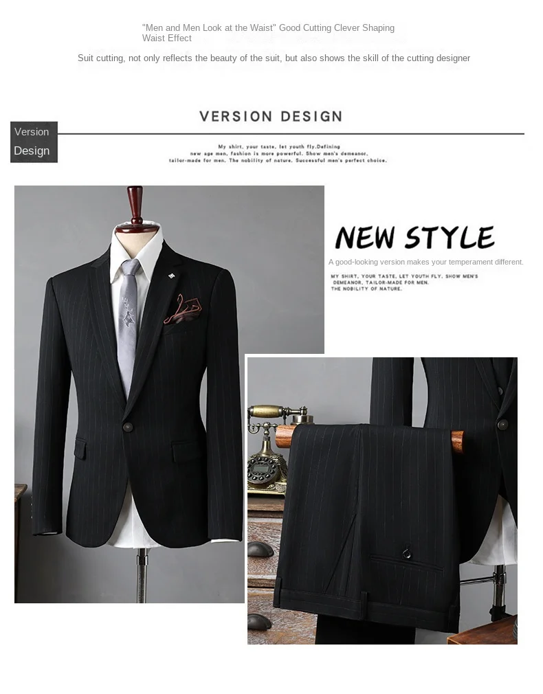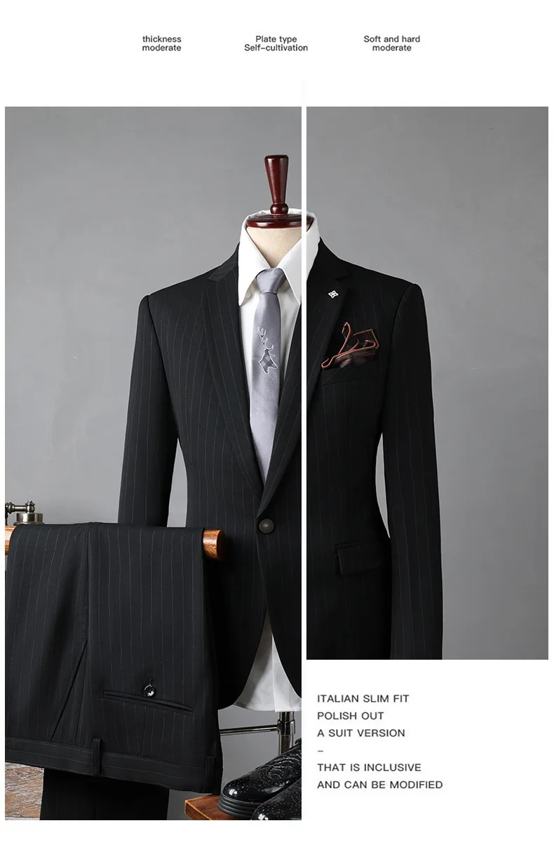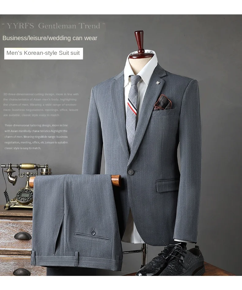 2024 Men’s High-End Korean Slim Fit Business Suit Single Breasted Zipper Fly Pants Light Familiar Custom Print Worsted Foreign