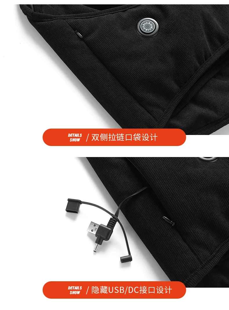 Mens Casual Heated Vest V-Neck Sleeveless Wetsuit Winter Outer Wear Windproof Warm Fabric Woven Knitted Featuring Print