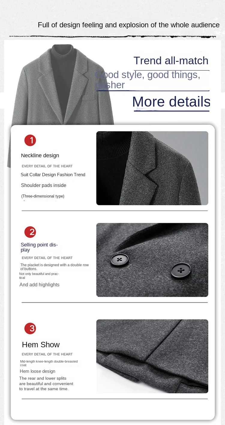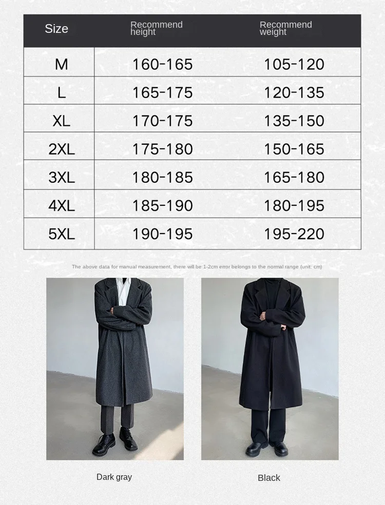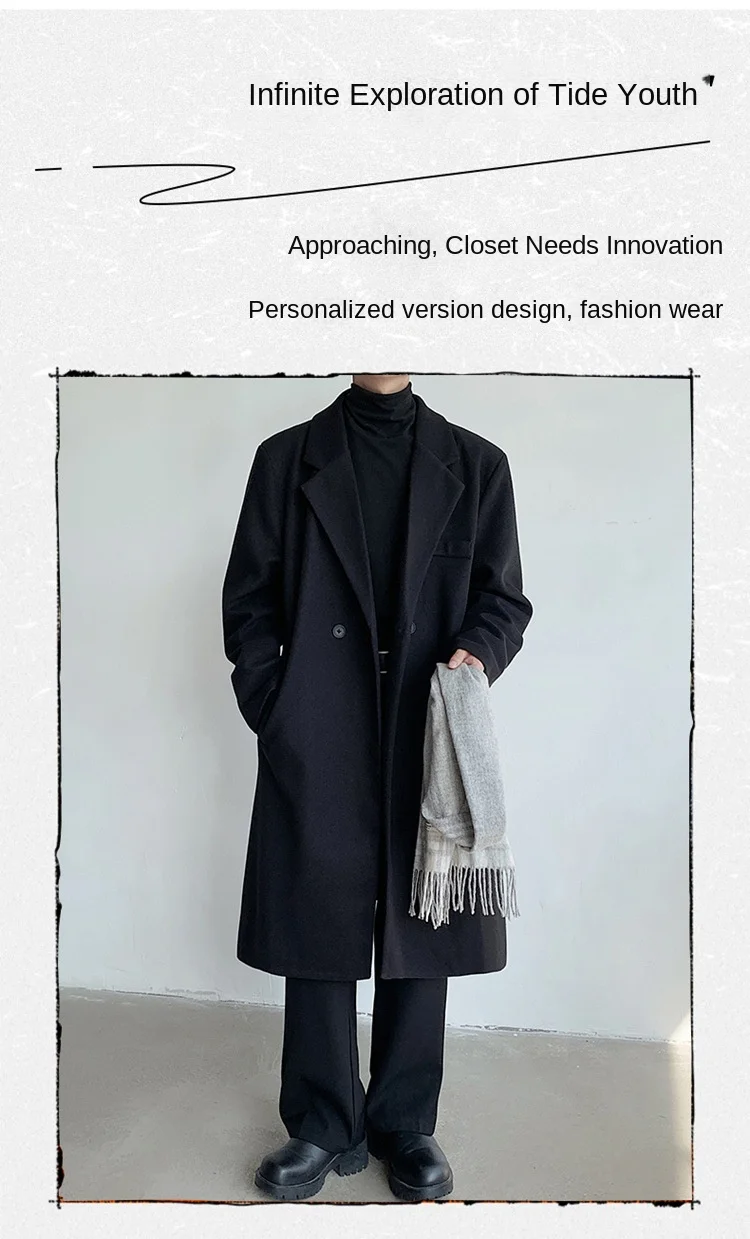Men’s Casual Korean Style Over-the-Knee Coat Loose Mid-Length Trenchcoat for Autumn Winter Youth Foreign Trade Clearance
