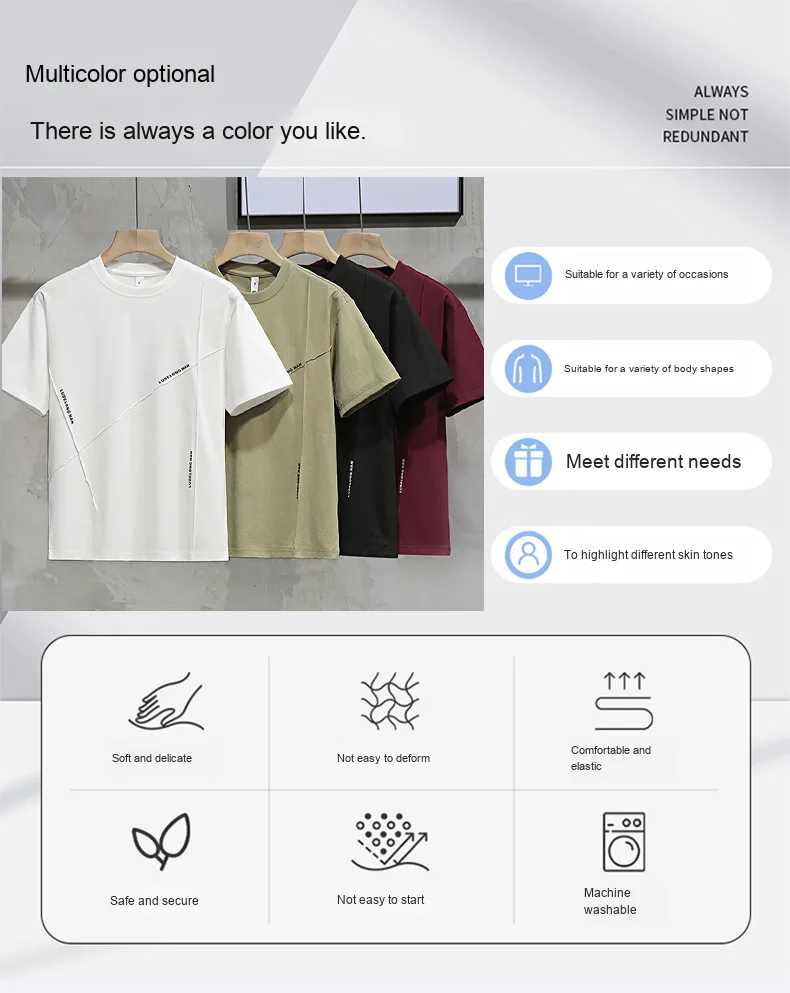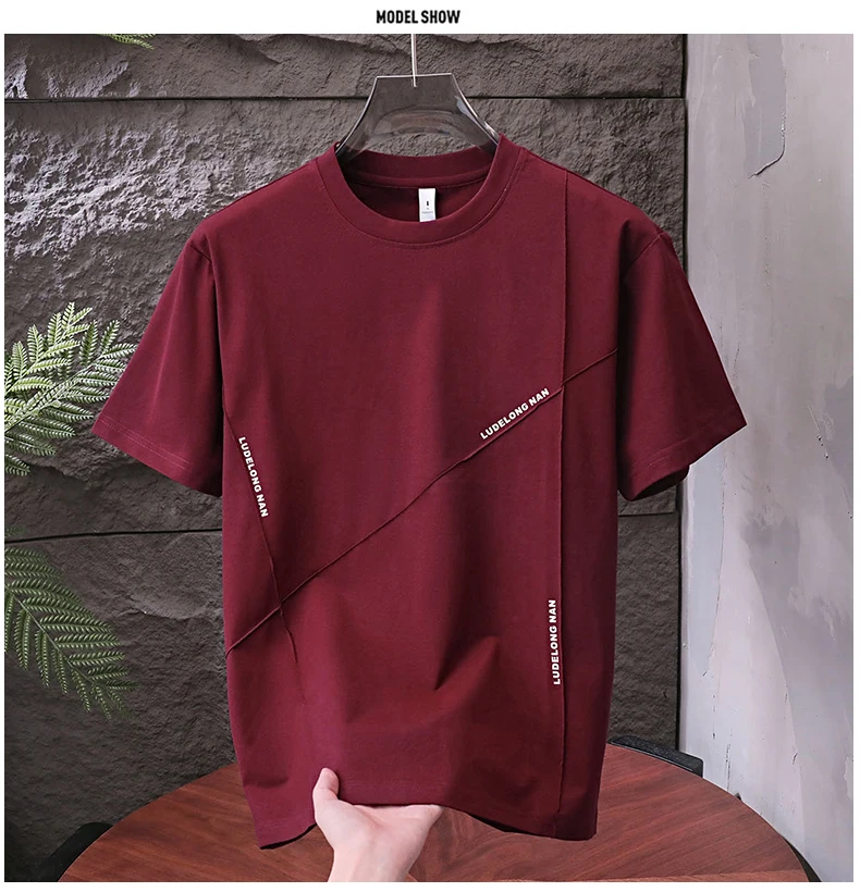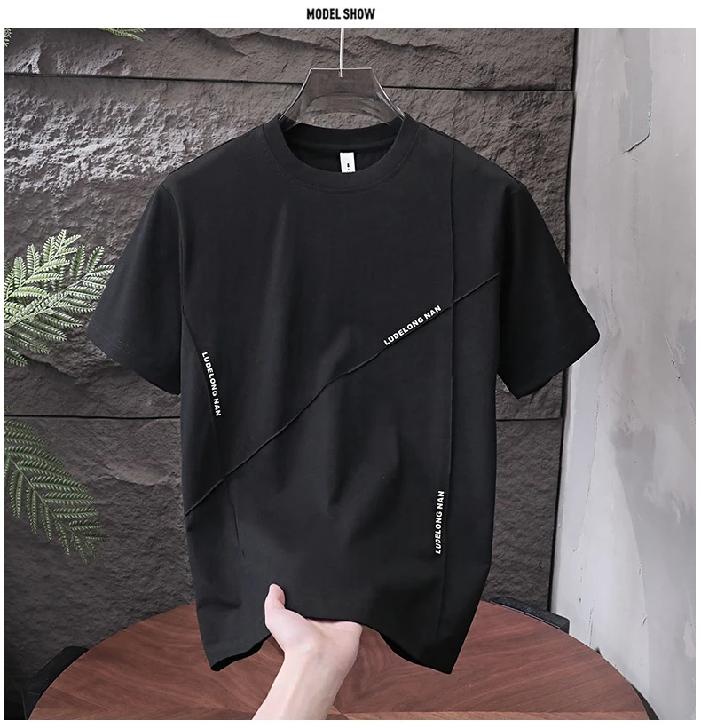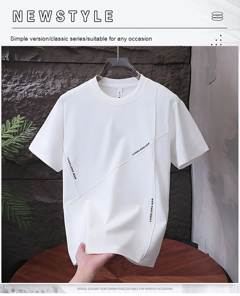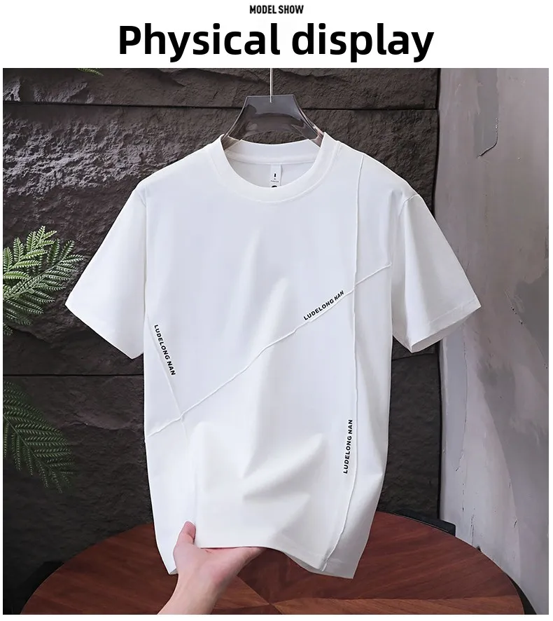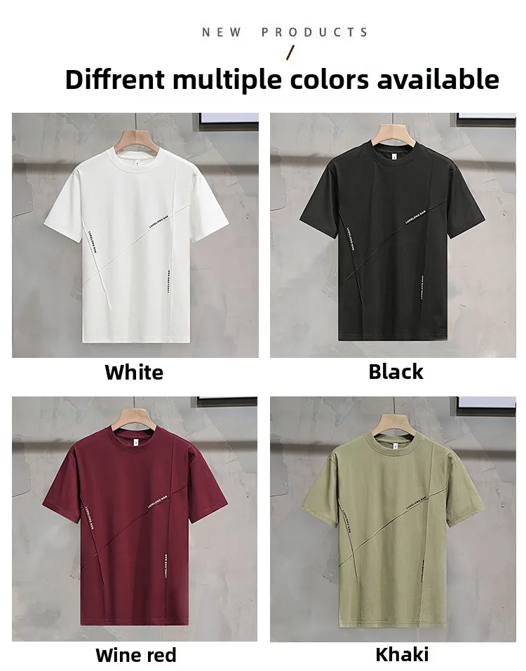 Men’s Casual Summer Sports Dry-Fit Top 100% Cotton T-Shirt Embossed Letters Short Sleeves Loose Fit Silicone Solid Blank Knitted
