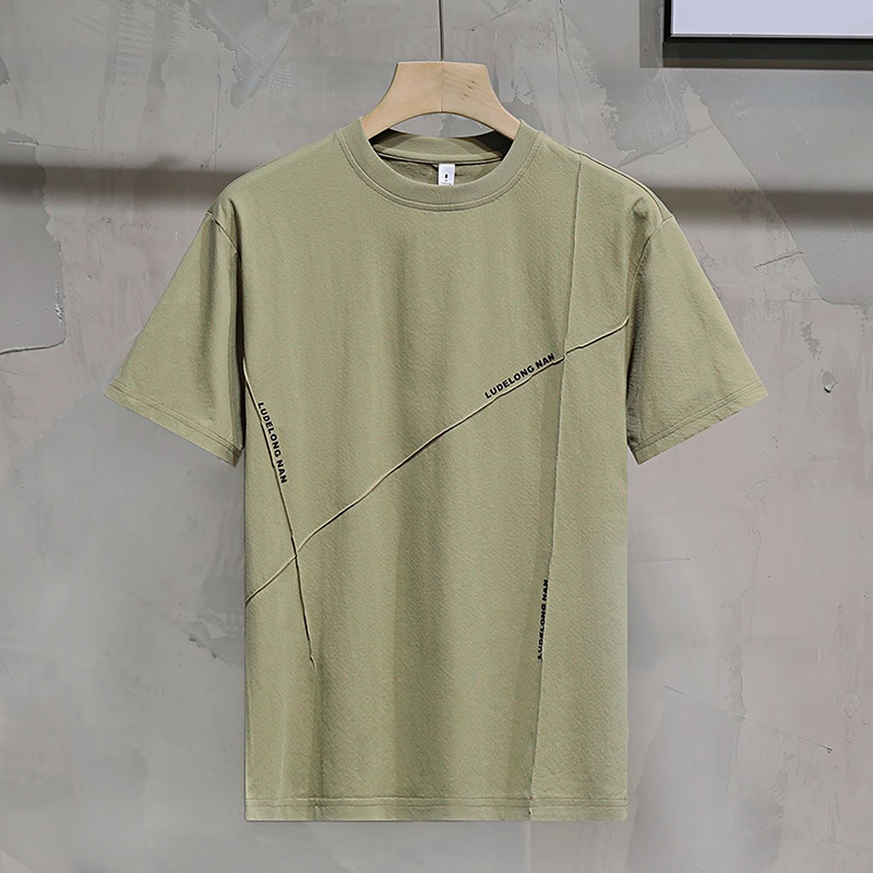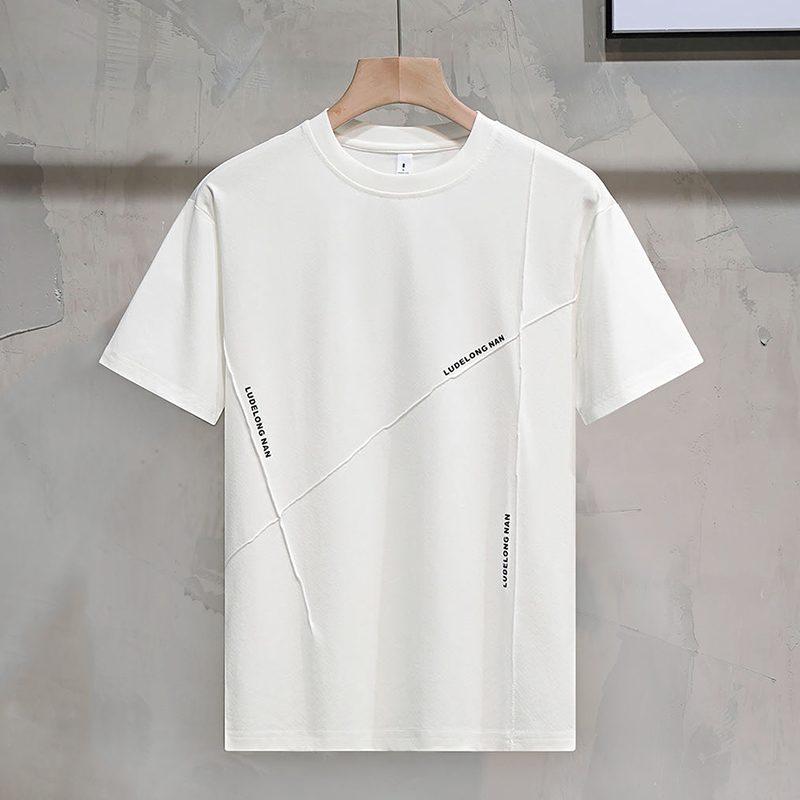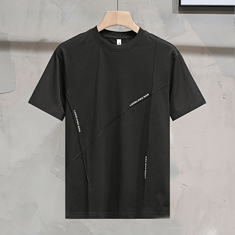 Men’s Casual Summer Sports Dry-Fit Top 100% Cotton T-Shirt Embossed Letters Short Sleeves Loose Fit Silicone Solid Blank Knitted