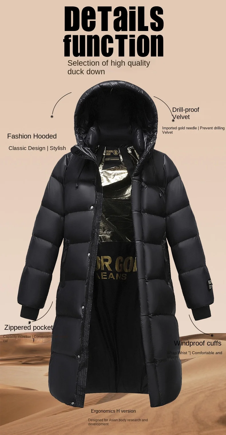 Men’s Casual Winter Bomber Jacket Black Gold White Long Workwear Anti-Season 90 Genuine Duck Goods Zipper Winter Couples’ Jacket