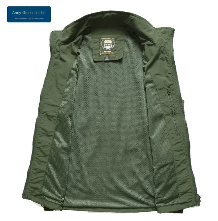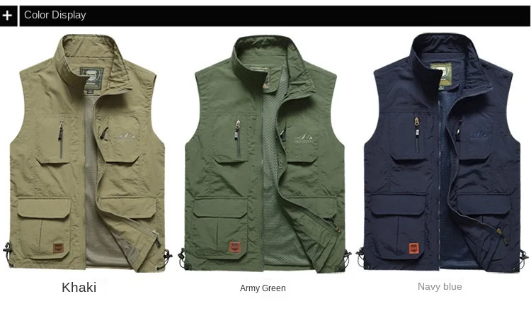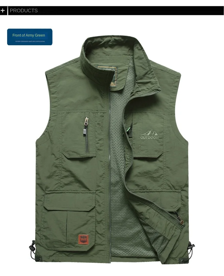 Men’s Custom Canvas Waistcoat Vest Zipper Closure V-Neck Casual Fishing Hiking Journalist Hunting Camera Man Autumn Accessory