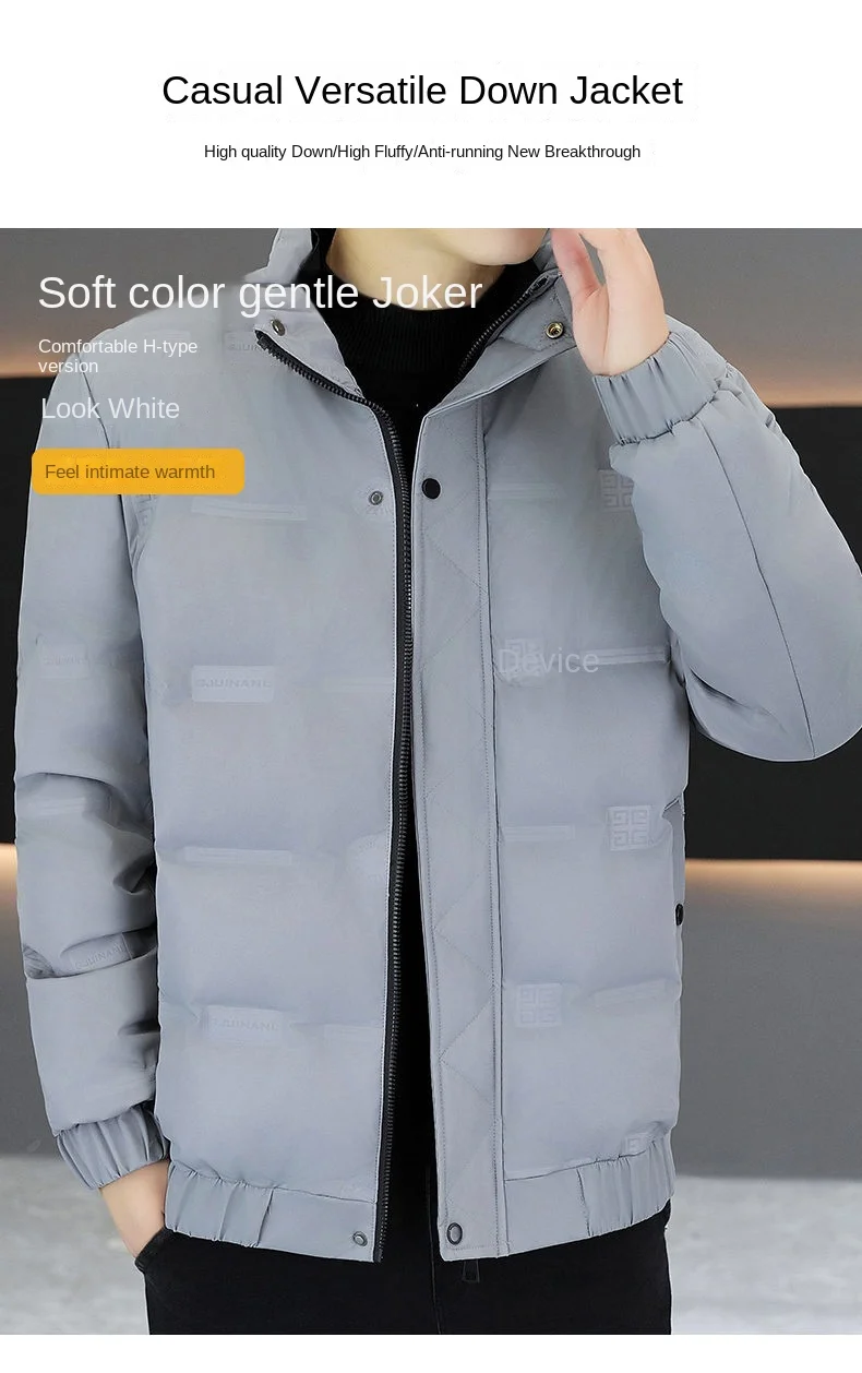 Men’s Custom Quilted Rainproof Puffer Trench Jacket Full-Length Goose Coat Waterproof Zipper Closure Drop Tail Hood Short Design