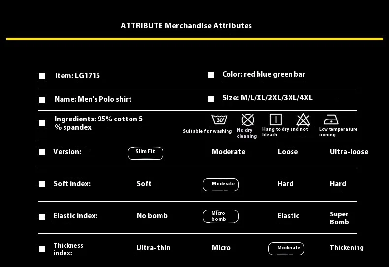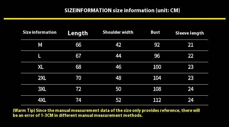 | Size | M, L, XL, 2XL, 3XL, 4XL |