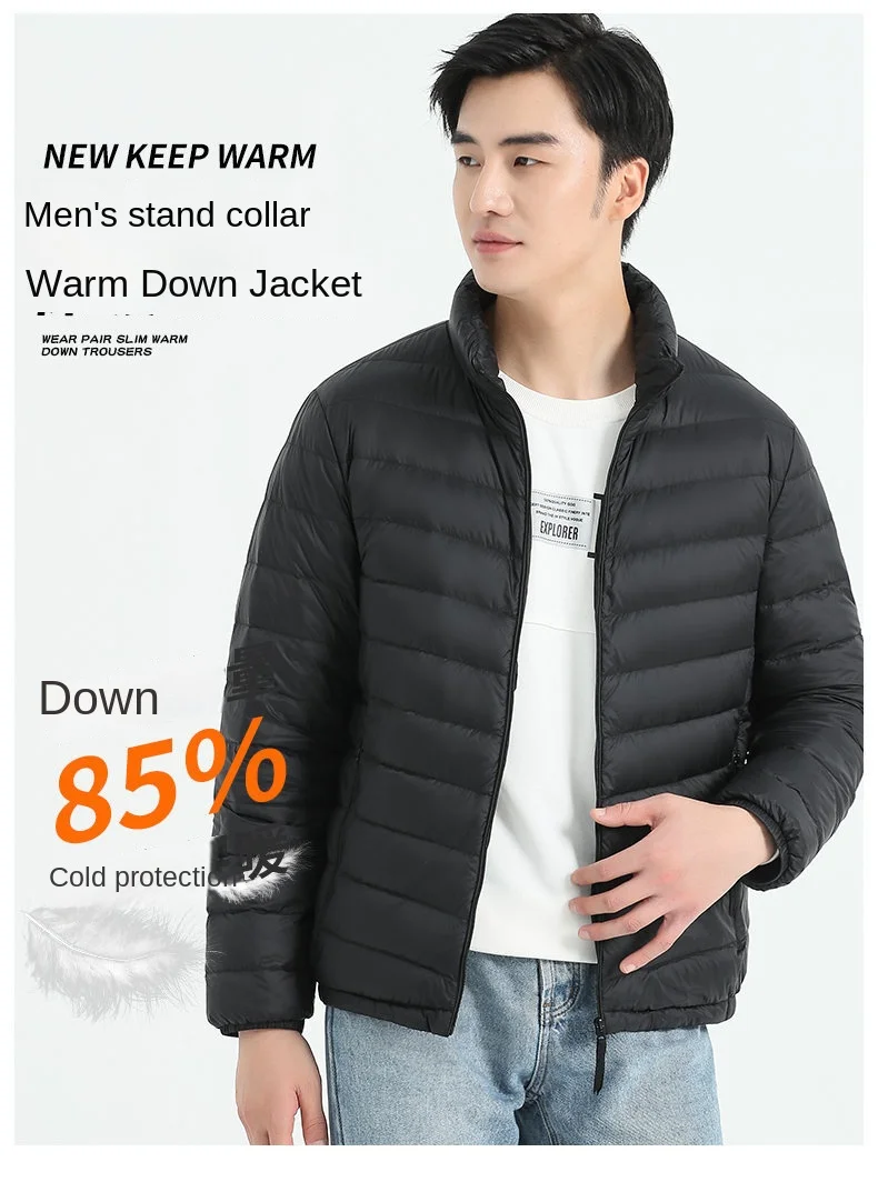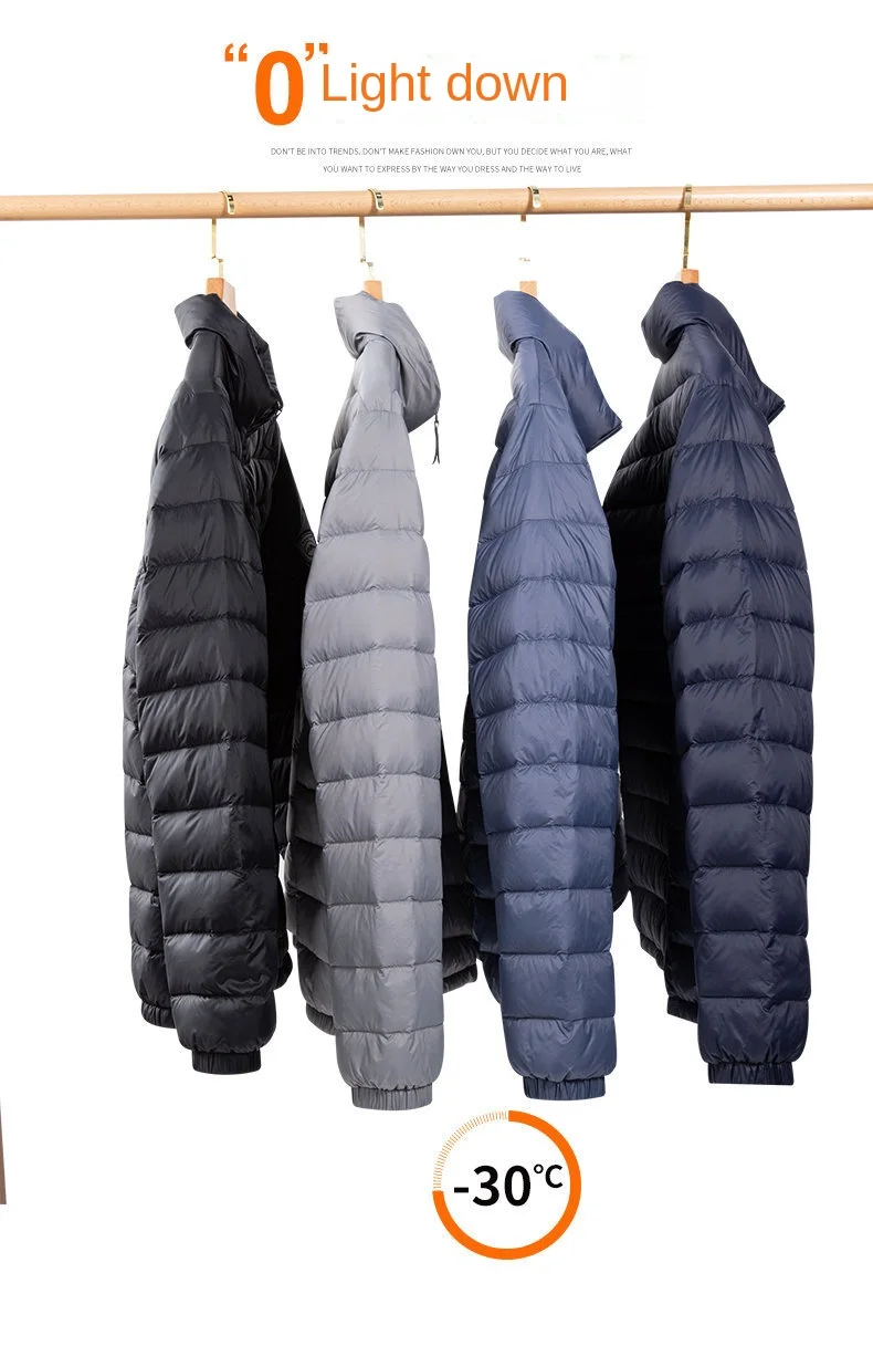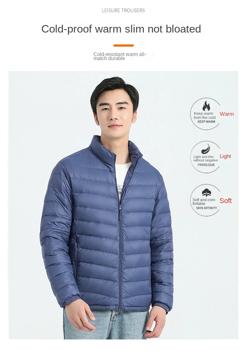 Men’s Fashionable Casual GB 90 White Duck Jacket Waterproof Thin Lightweight Corduroy Warm Fleece Lining All-Match Autumn Collar