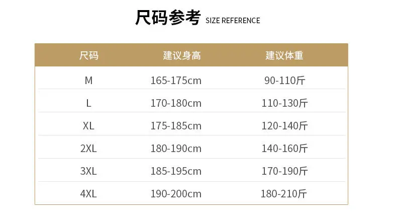 | Size | M, L, XL, 2XL, 3XL, 4XL |
