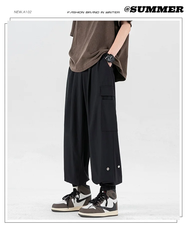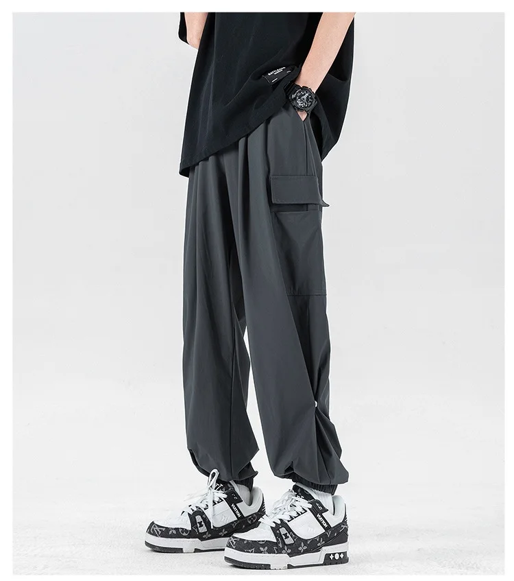 Men’s Fashionable Nine-Point Sports Jogger Pants Summer New Arrival Loose Fit Made of Ice Silk Cotton by Brand Workwear Sports