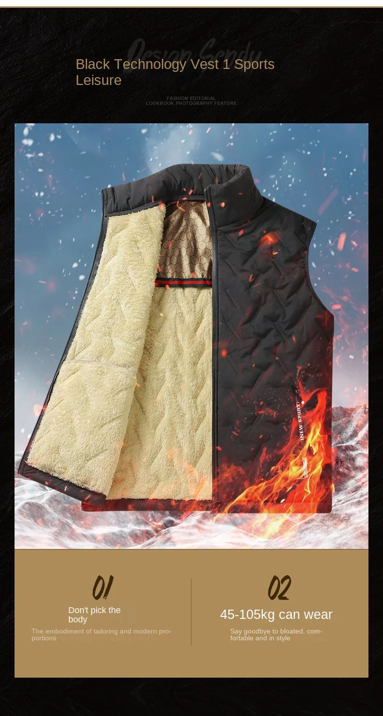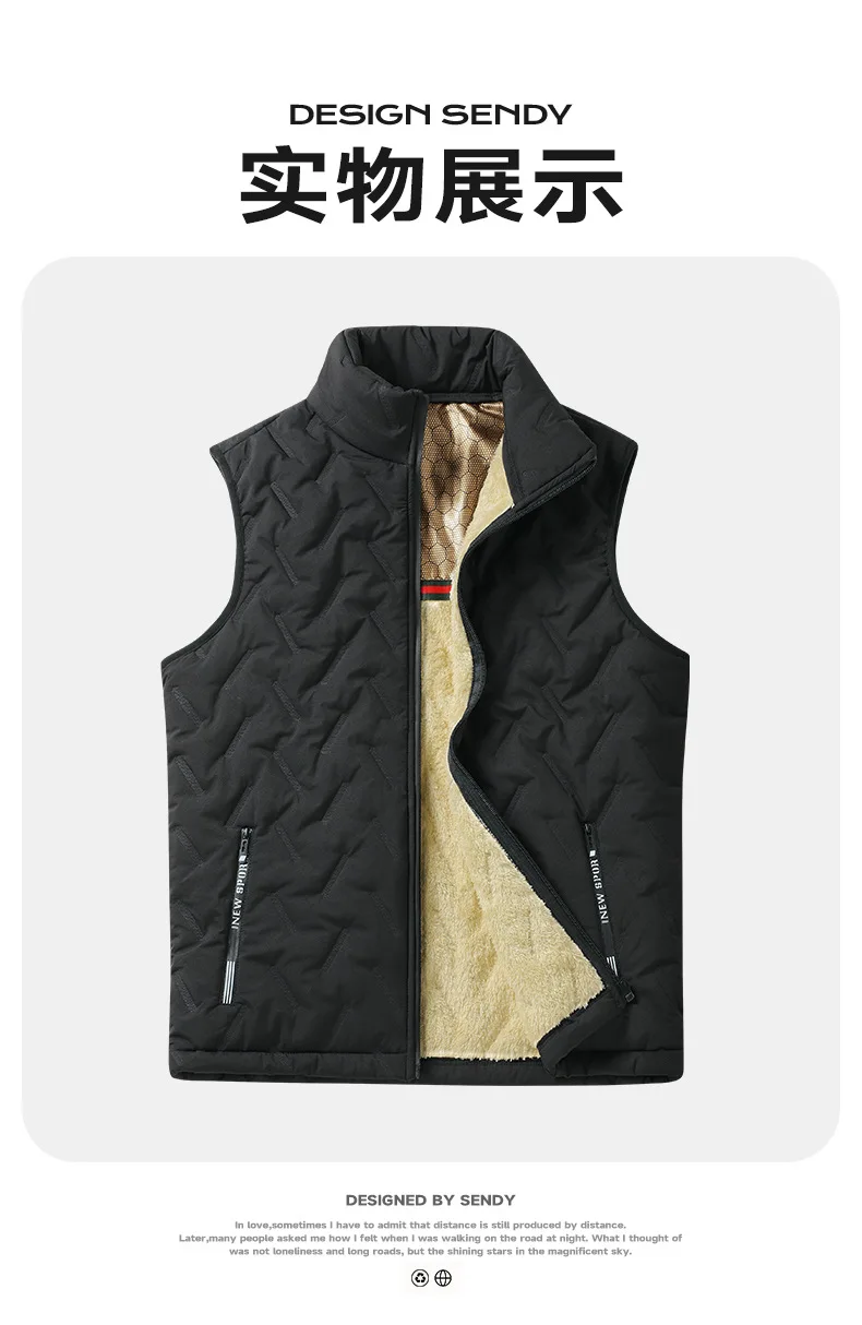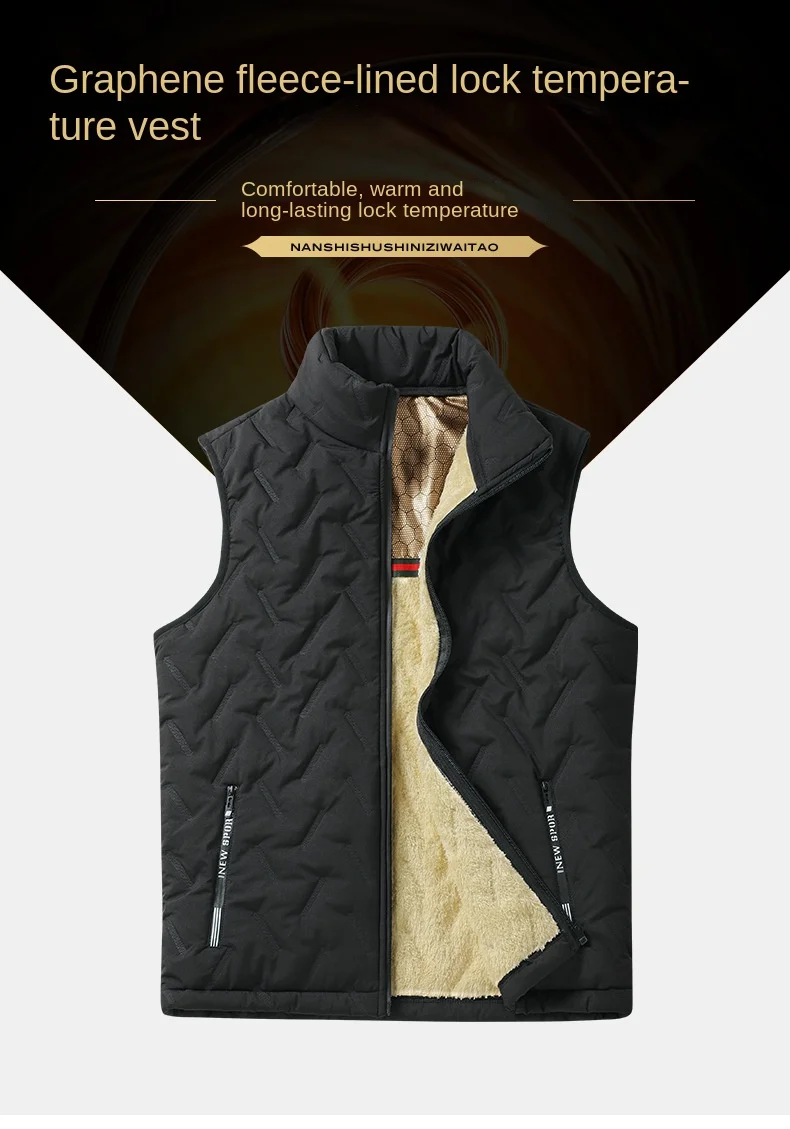 Men’s Formal Ultrasonic Velvet Graphene Waistcoat Horse Clip Collar Padded Lamb Cross-Border Winter Tooling Breathable for