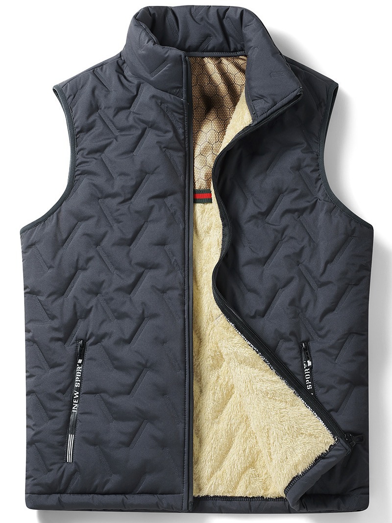 Men’s Formal Ultrasonic Velvet Graphene Waistcoat Horse Clip Collar Padded Lamb Cross-Border Winter Tooling Breathable for