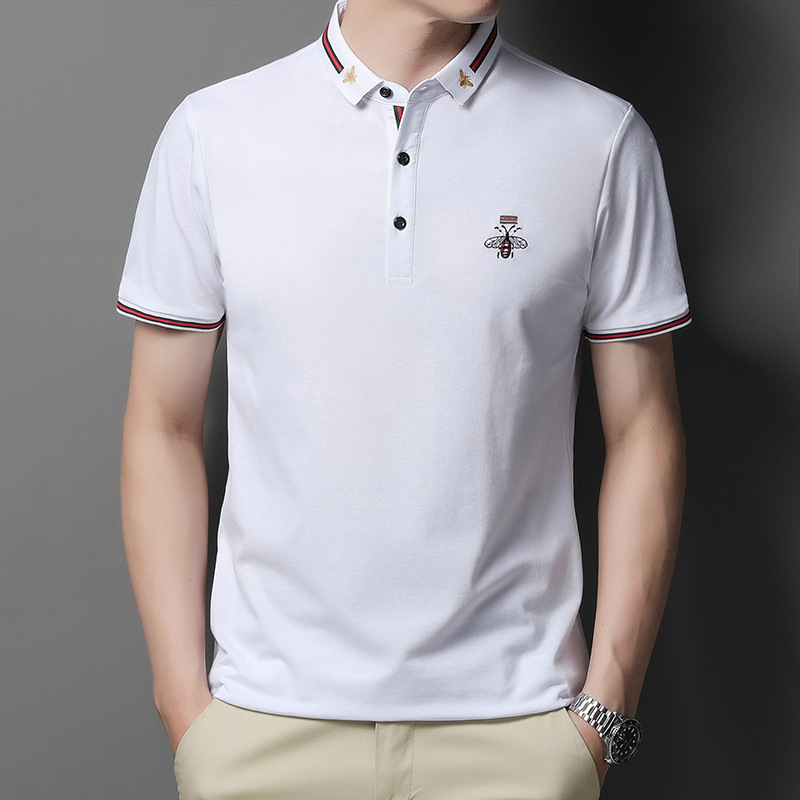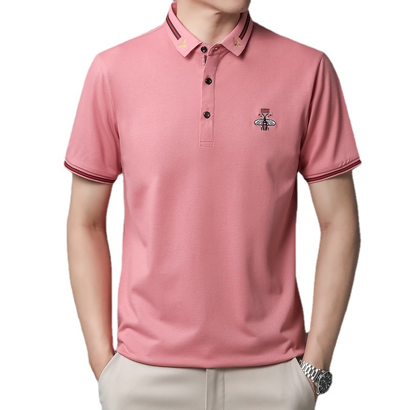 Men’s Half-Sleeved Bee Lapel for Polo Shirt Youth Business Style Made Mercerized Cotton Solid Color Loose Fit Anti-Pilling Knitt