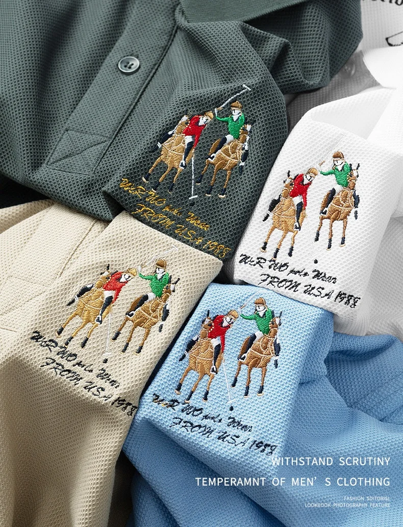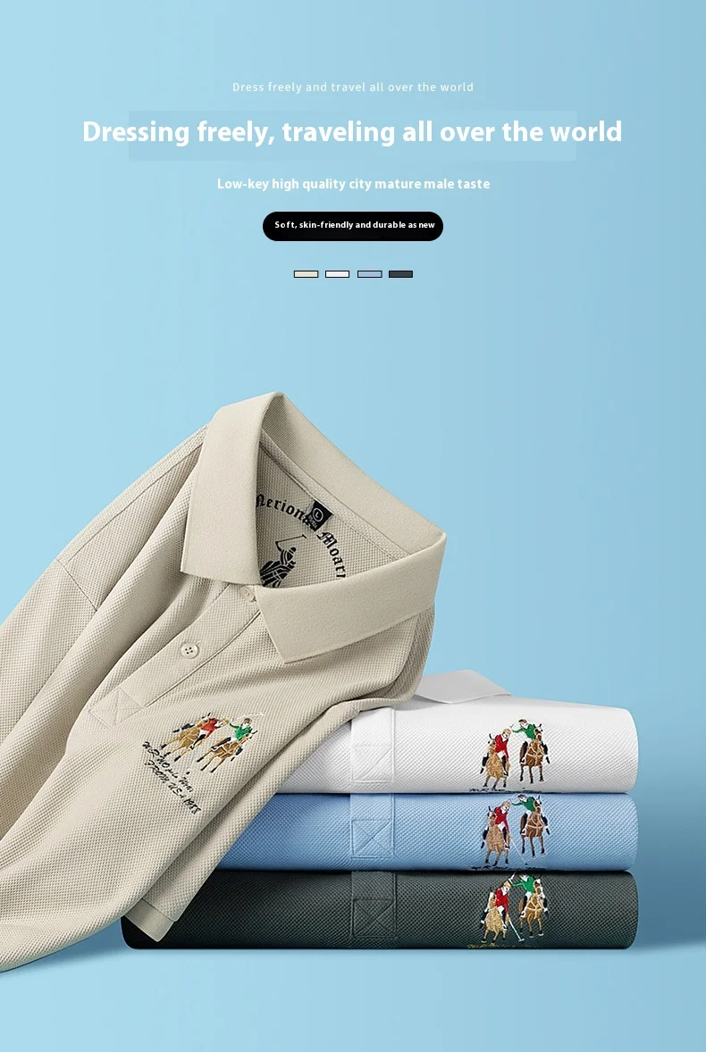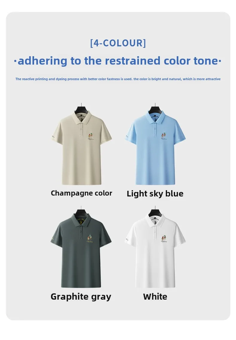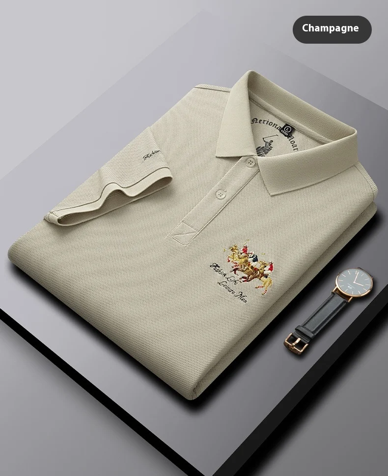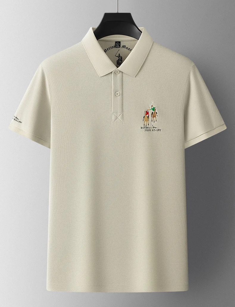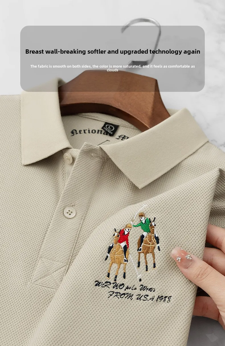 Men’s High-End Casual for Polo Shirt Embroidered Slim Fit Size 6XL Breathable Anti-Wrinkle Spandex Material Short Solid Knitted
