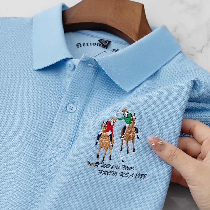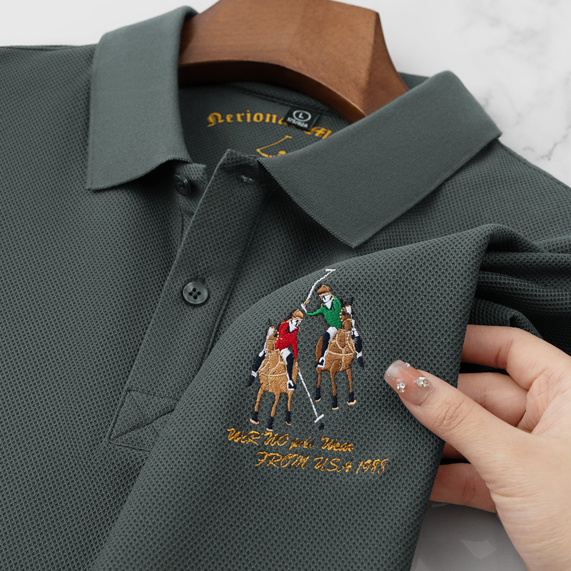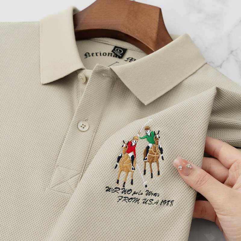 Men’s High-End Casual for Polo Shirt Embroidered Slim Fit Size 6XL Breathable Anti-Wrinkle Spandex Material Short Solid Knitted