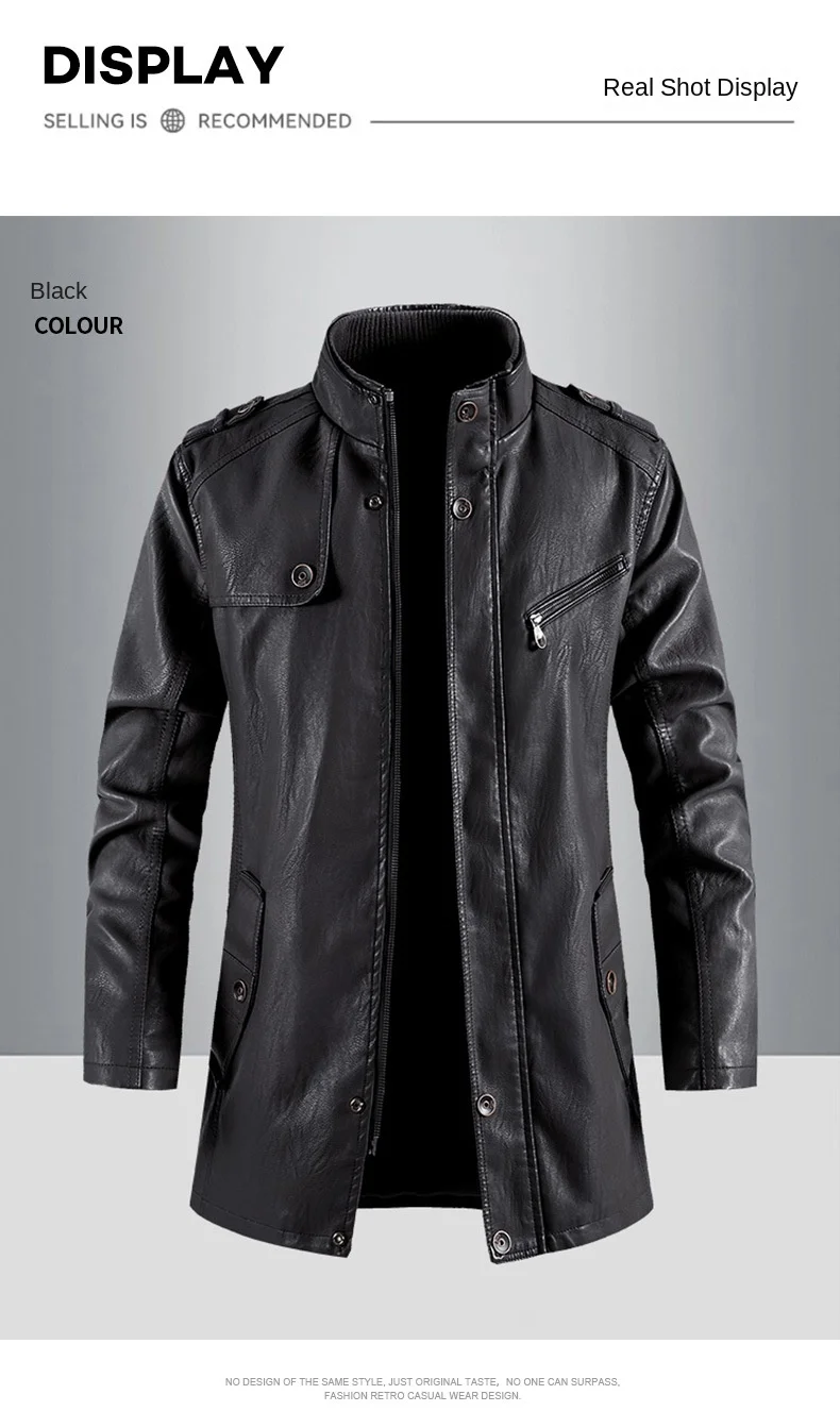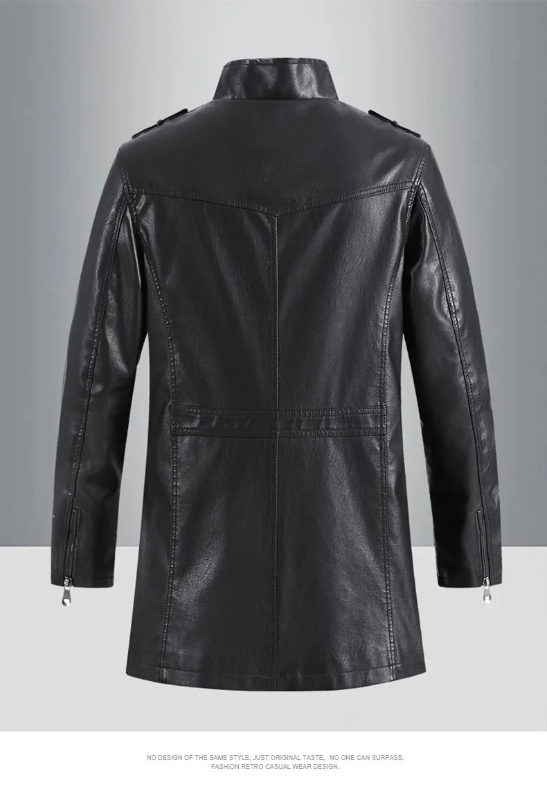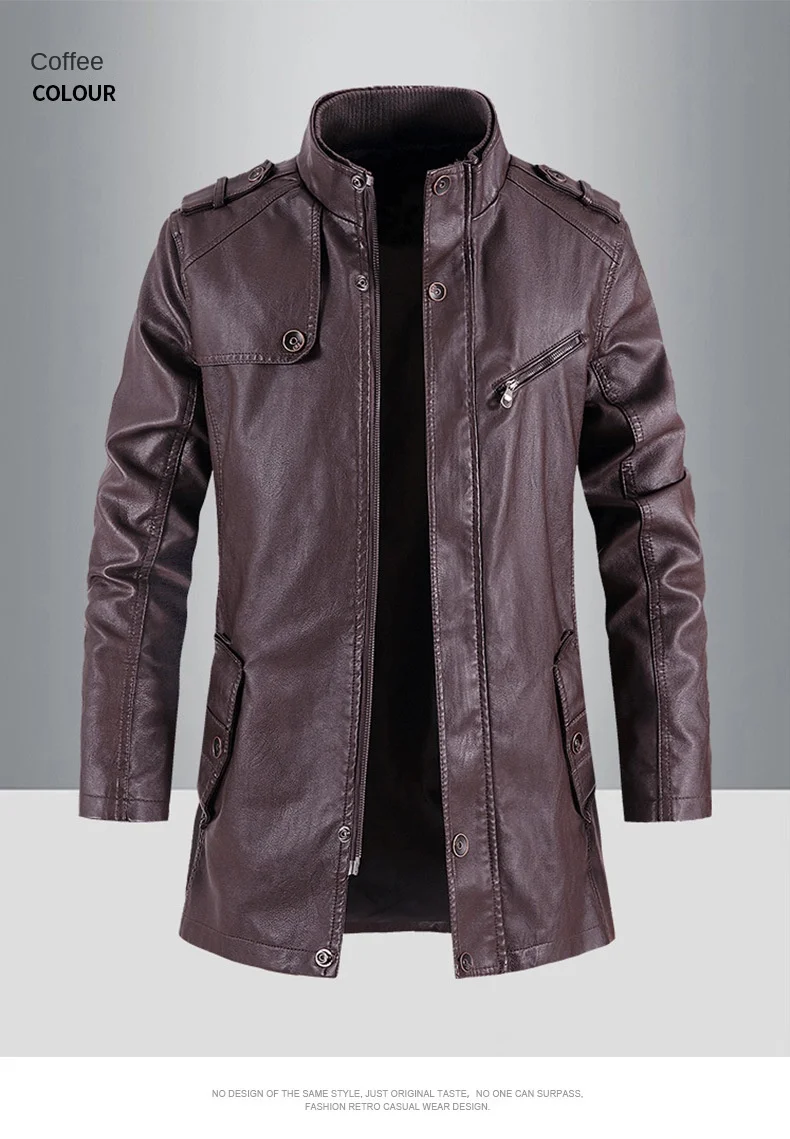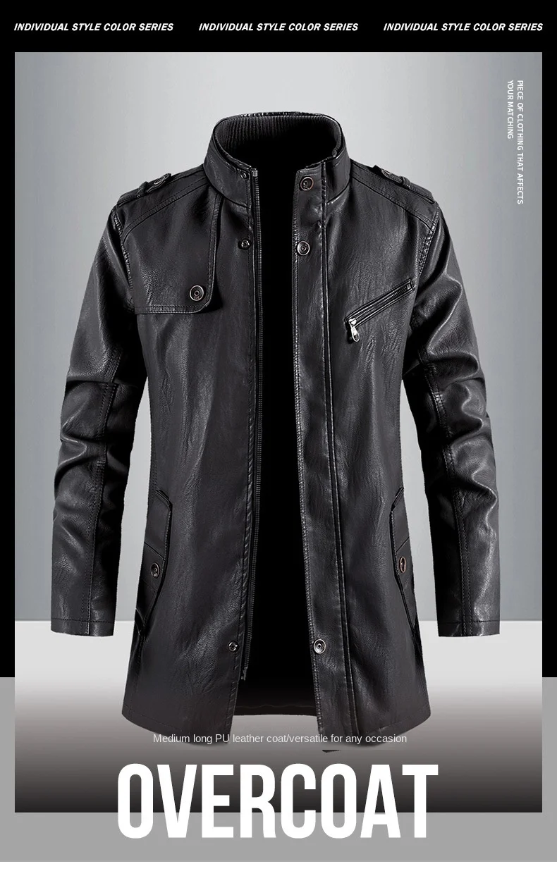 Men’s High-End European American Casual Mid-Length Trenchcoat Autumn Winter Zip Coat Button New Fleece Fabric Foreign Trade
