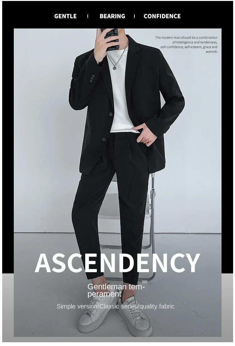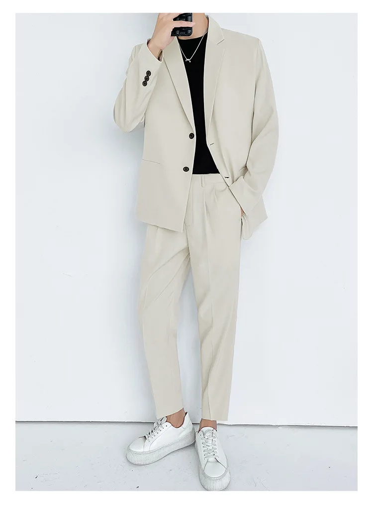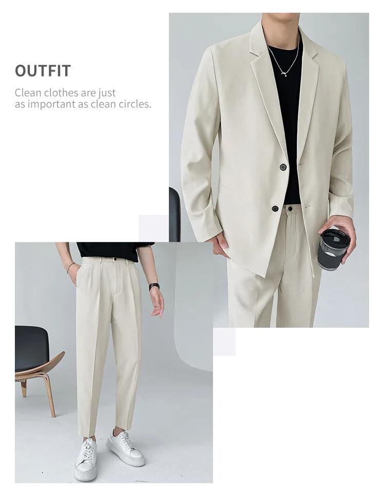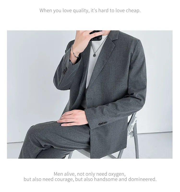 2024 Men’s High-End Korean Slim Fit Business Suit Single Breasted Zipper Fly Pants Light Familiar Custom Print Worsted Foreign