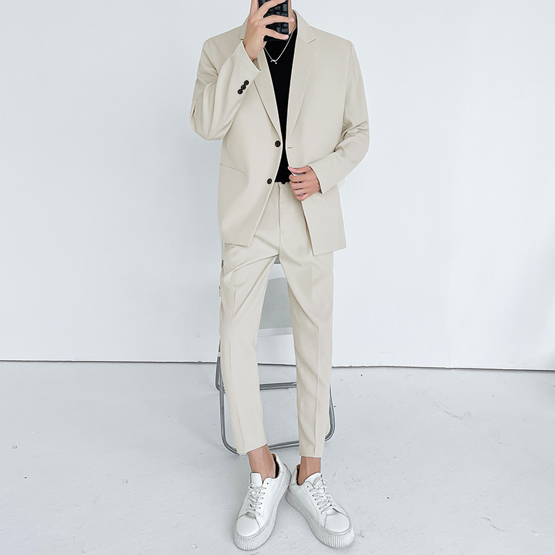 2024 Men’s High-End Korean Slim Fit Business Suit Single Breasted Zipper Fly Pants Light Familiar Custom Print Worsted Foreign