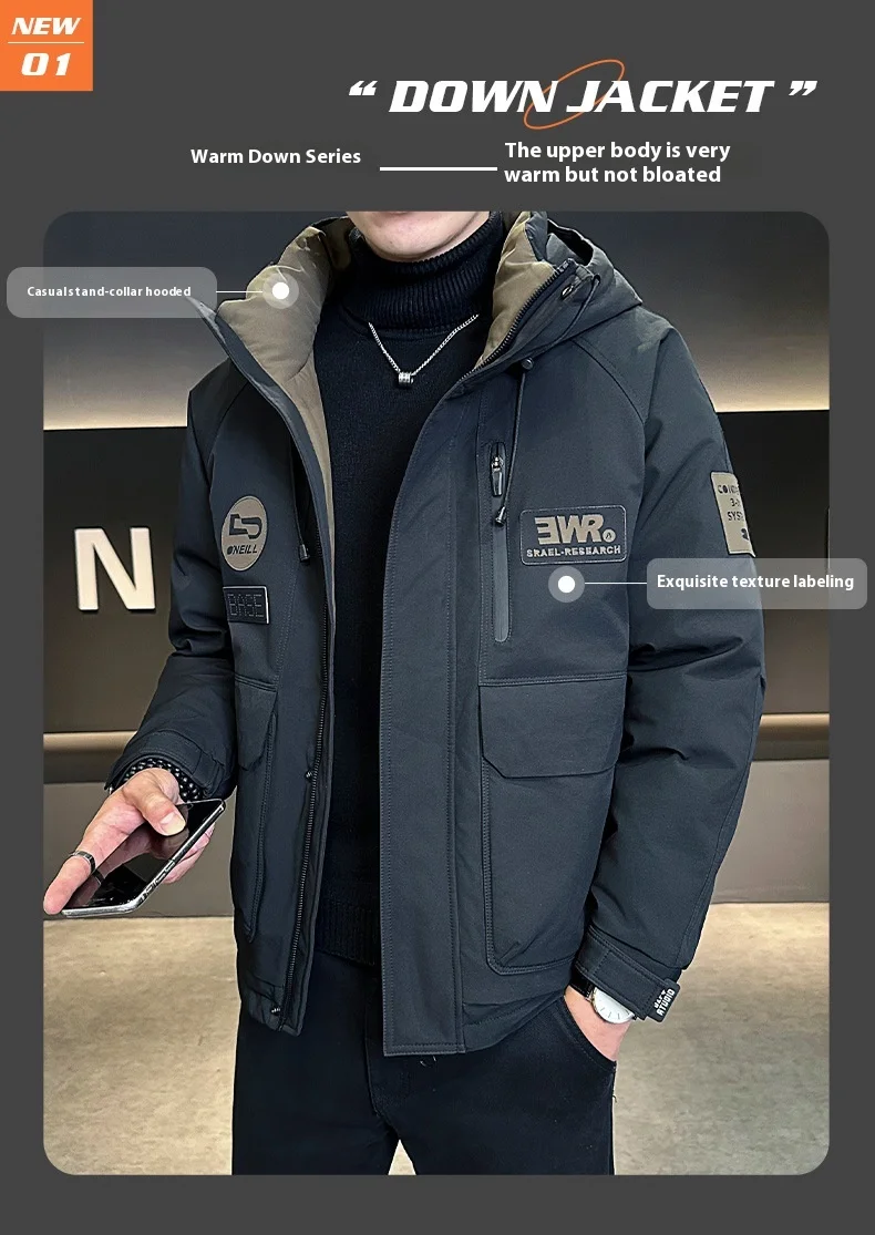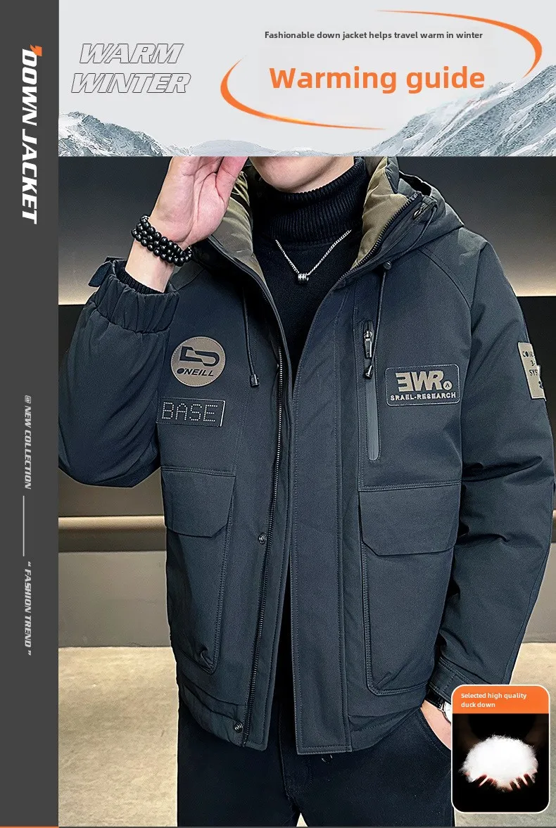 Men’s High Quality Hooded Winter Jacket Cross-Border Fashionable Brand Stand Outdoor Sports Casual Zipper New Arrival Mountain