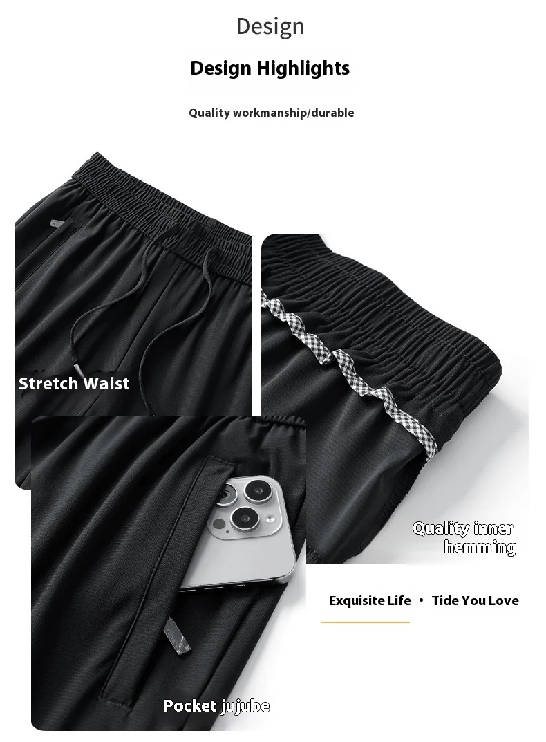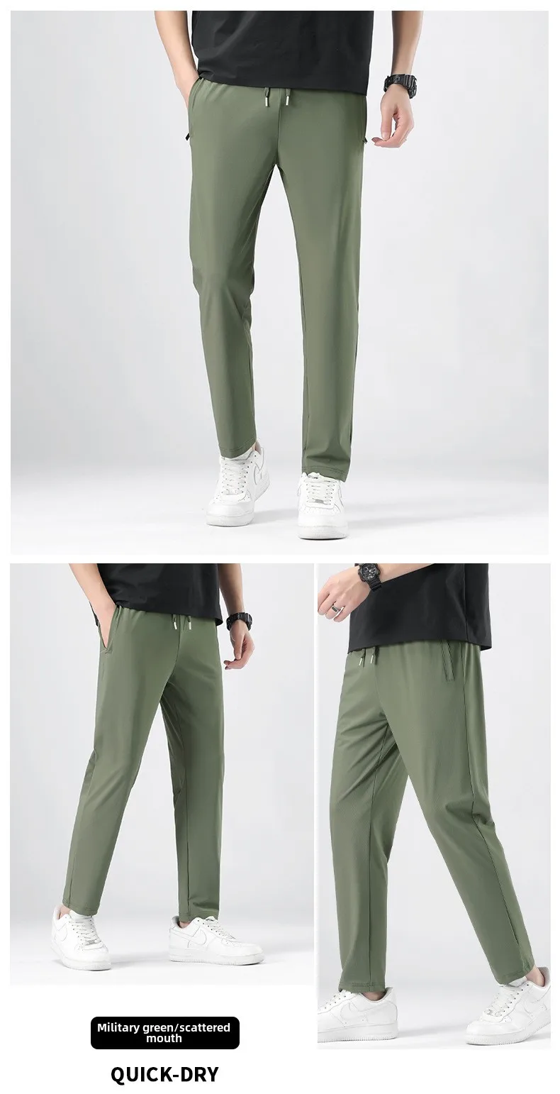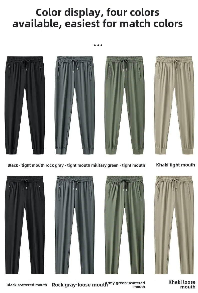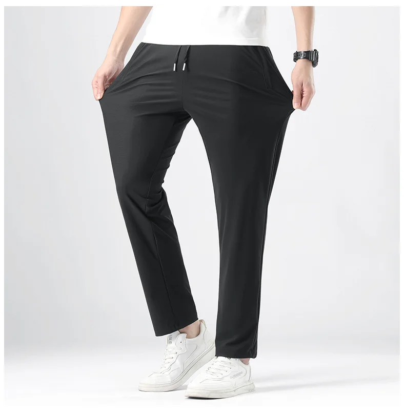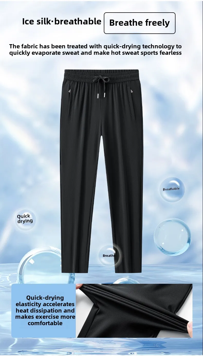 Men’s High Quality Ice Silk Pants XL Plus Size Loose Casual Summer Sports Long Pants Breathable Waistband Cool Lightweight Flat