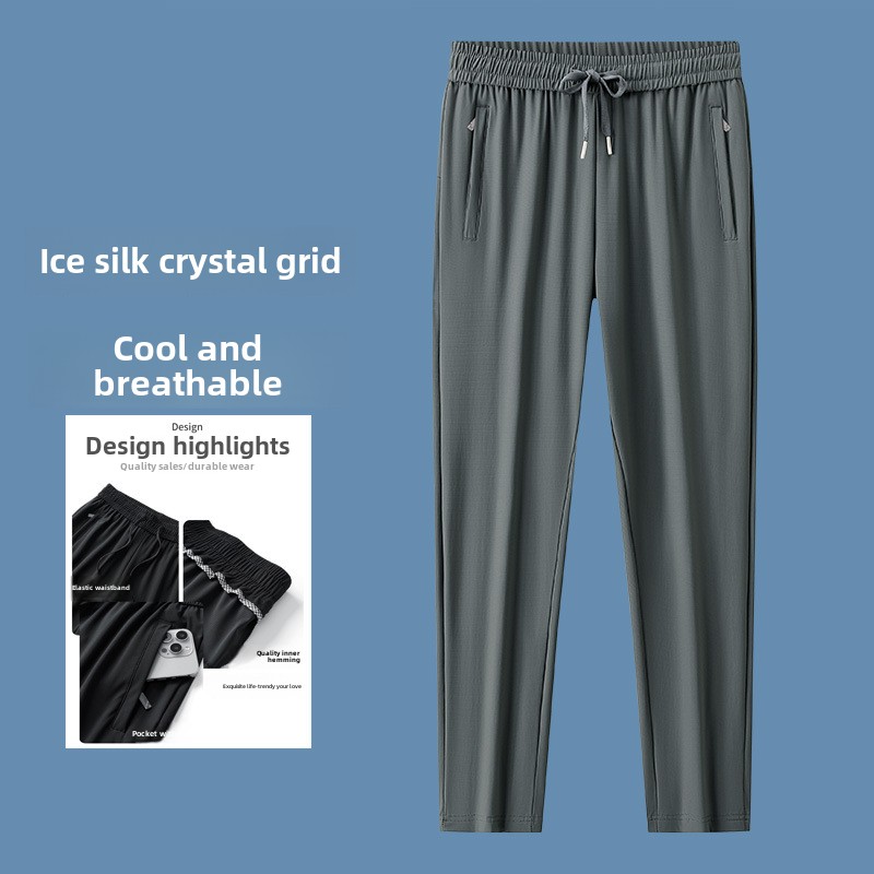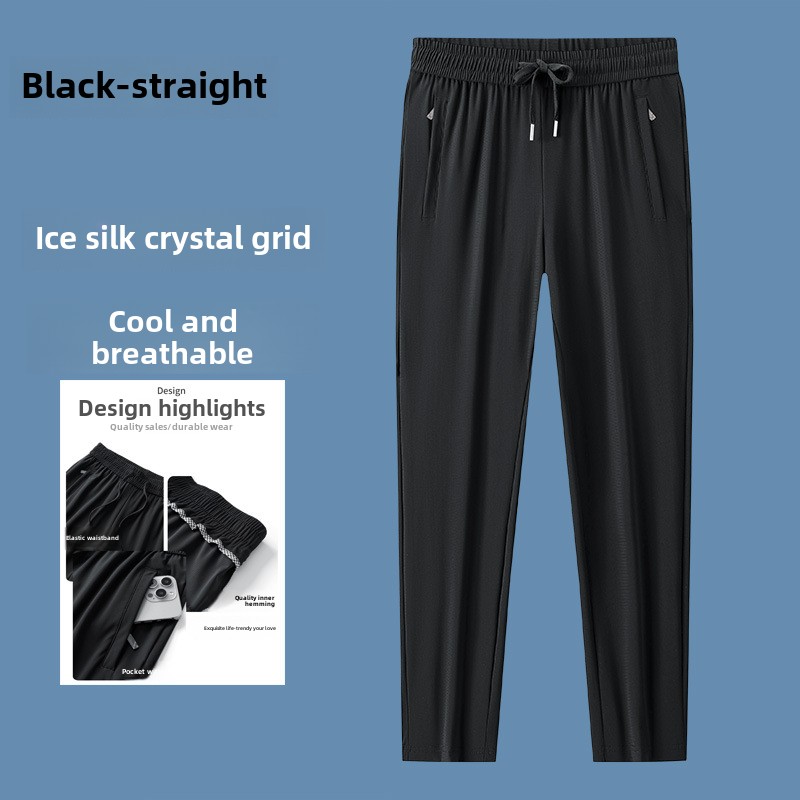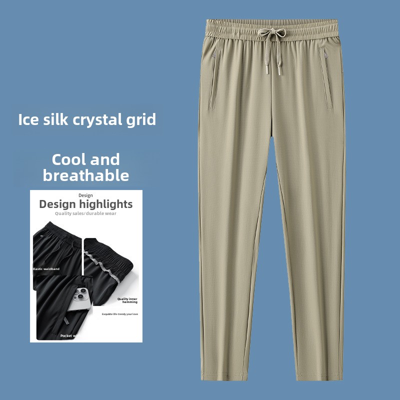 Men’s High Quality Ice Silk Pants XL Plus Size Loose Casual Summer Sports Long Pants Breathable Waistband Cool Lightweight Flat