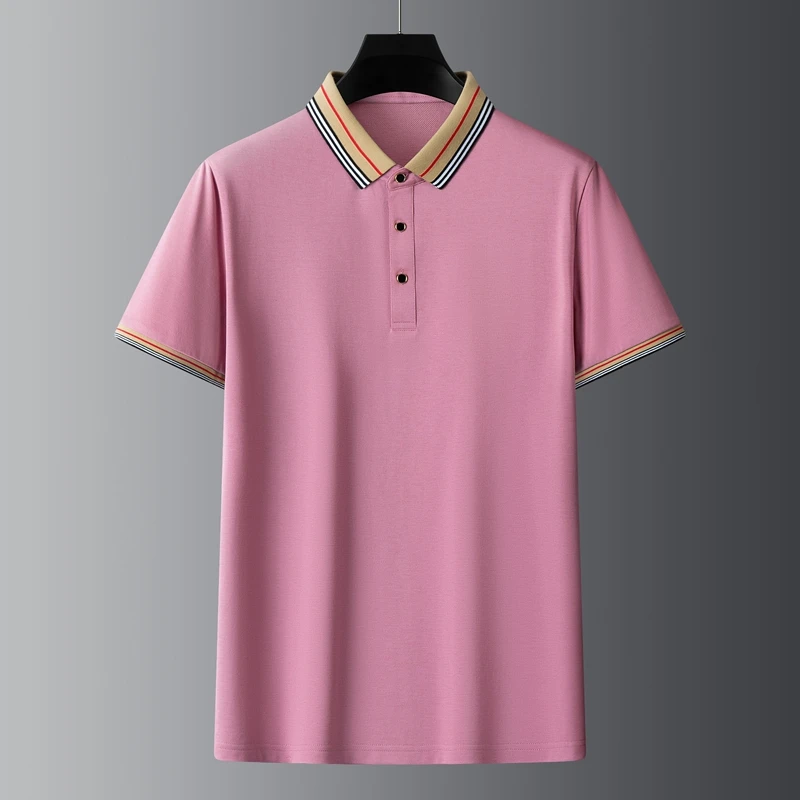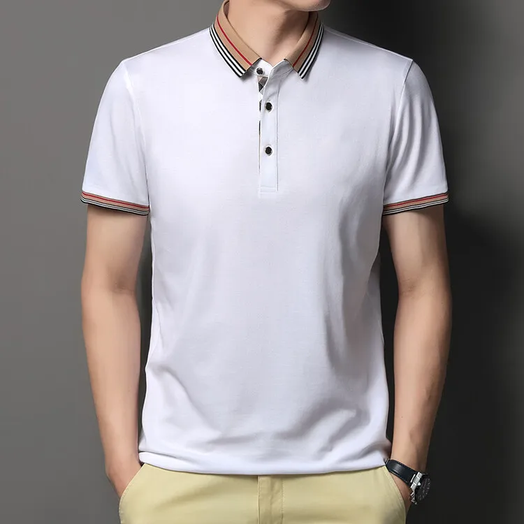 Men’s High Quality White Golf Polo Shirt Breathable Silk Knitted Fabric Button Short Sleeve M-4XL Perfect Birthday Gift