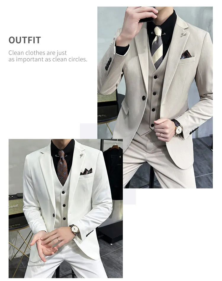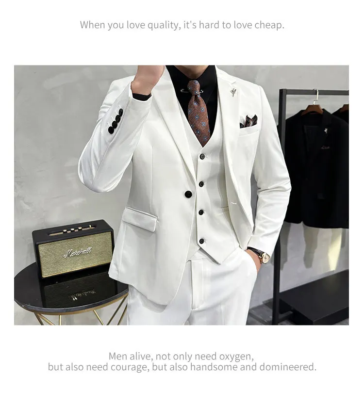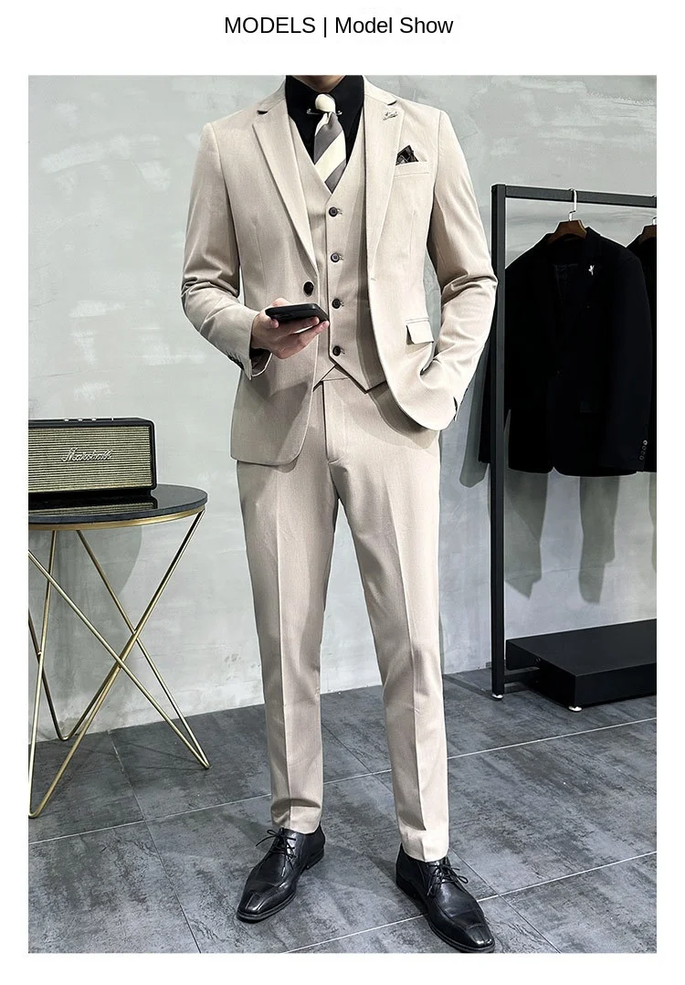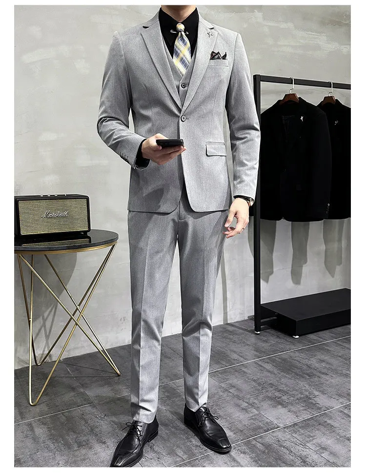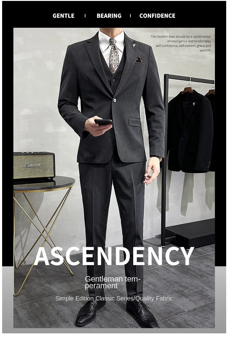 Men’s Korean Slim-Fit Single Breasted Flat Front Work Jacket New Mature Three-Piece Business Suit for Youth Foreign Trade