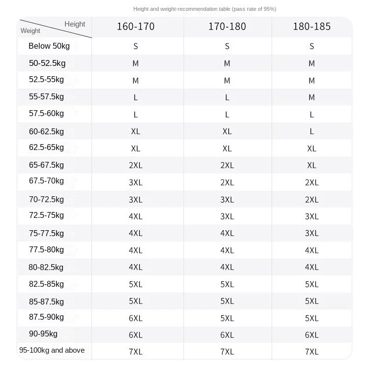 S, M, L, XL, 2XL, 3XL, 4XL, 5XL, 6XL, 7XL