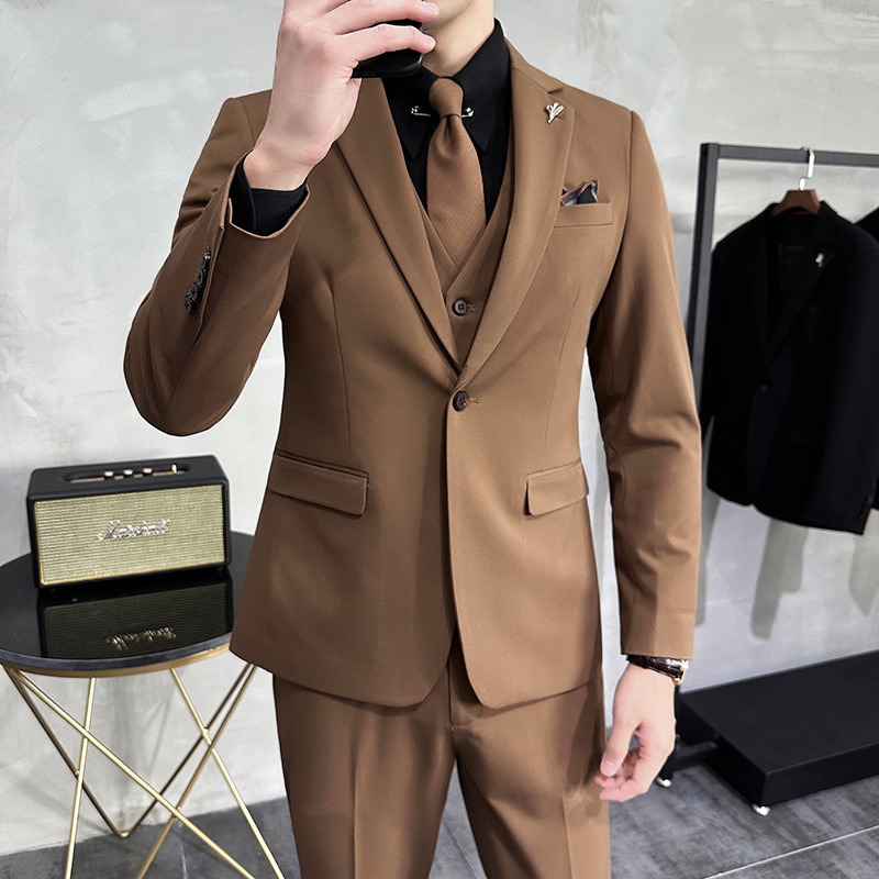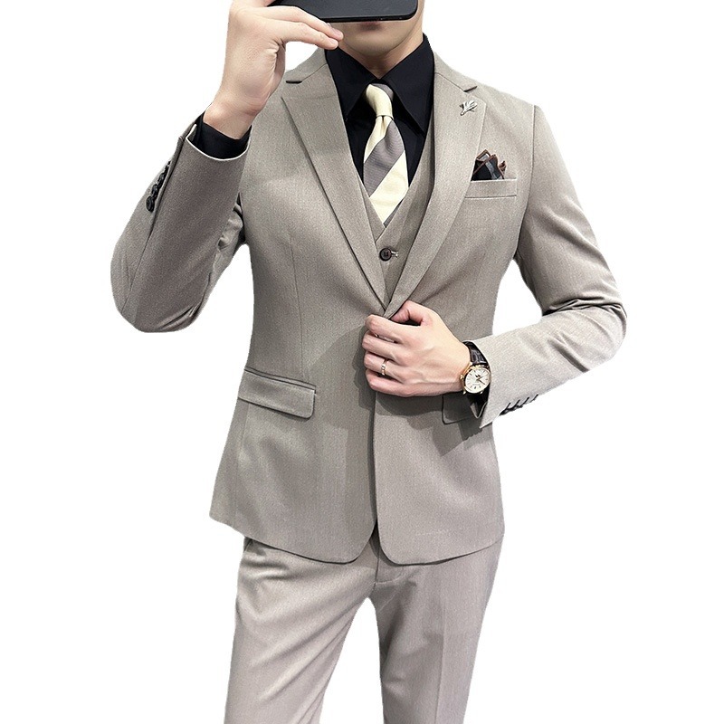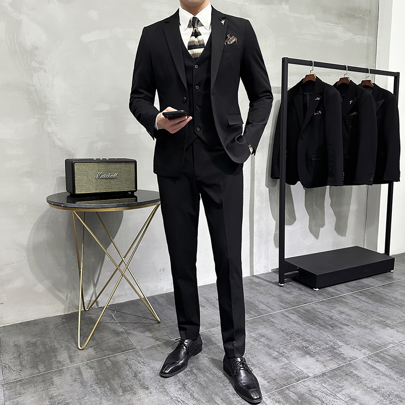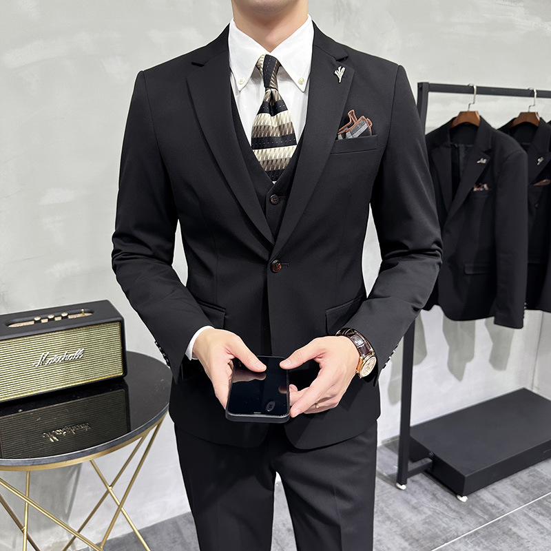 Men’s Korean Slim-Fit Single Breasted Flat Front Work Jacket New Mature Three-Piece Business Suit for Youth Foreign Trade