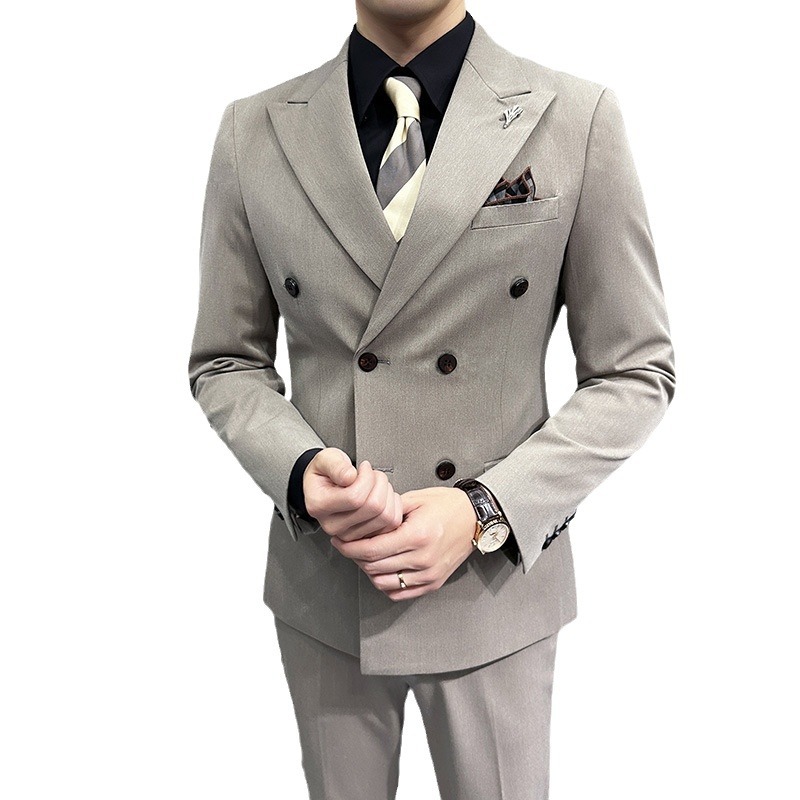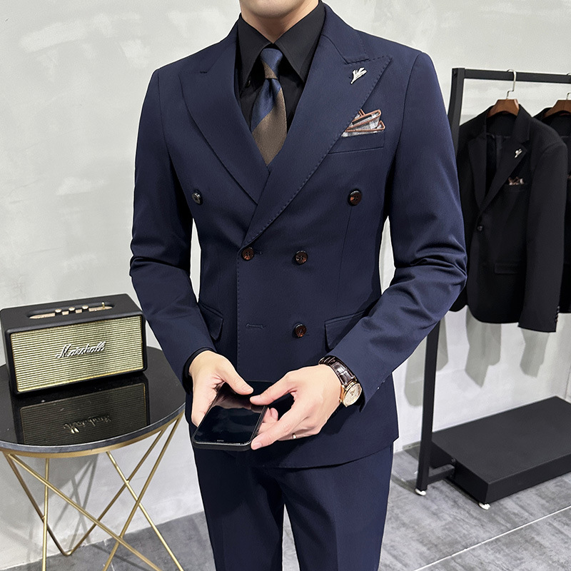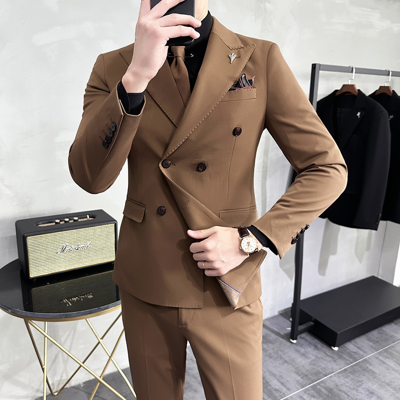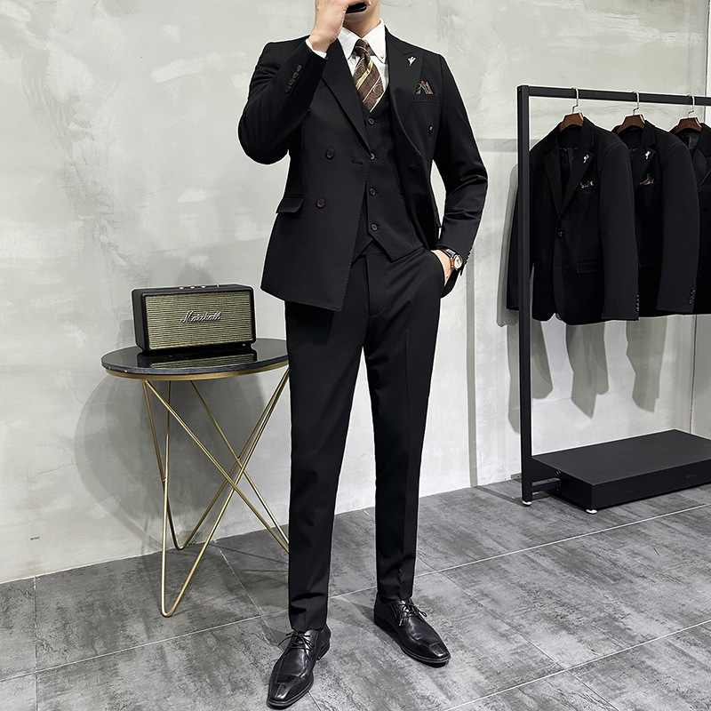 Men’s Korean-Style Double-Breasted Three-Piece Slim-Fit Business Suit Light Mature V-Neck Coat Plus Size Adults Weddings Events