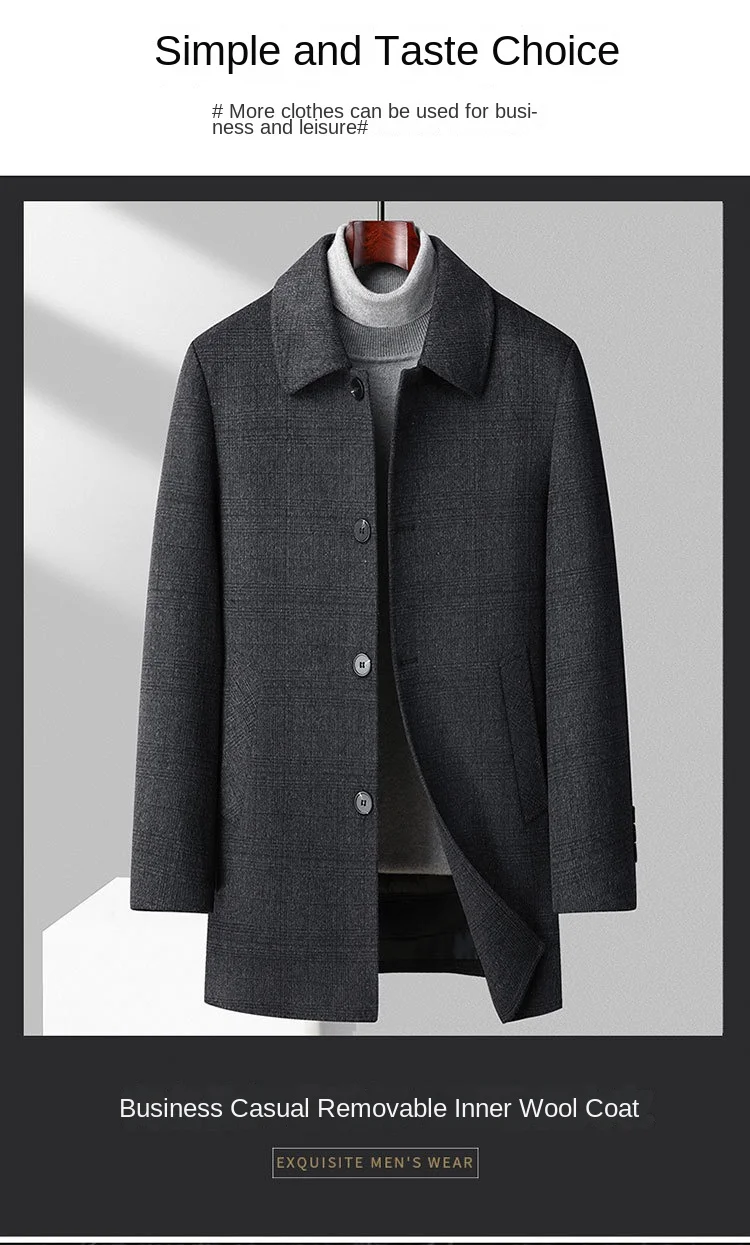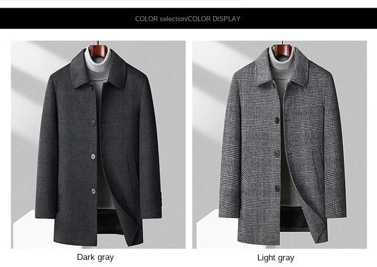 Men’s Korean Style Mid-Length Trenchcoat Fashionable High-End Woolen Overcoat for Spring Autumn Winter