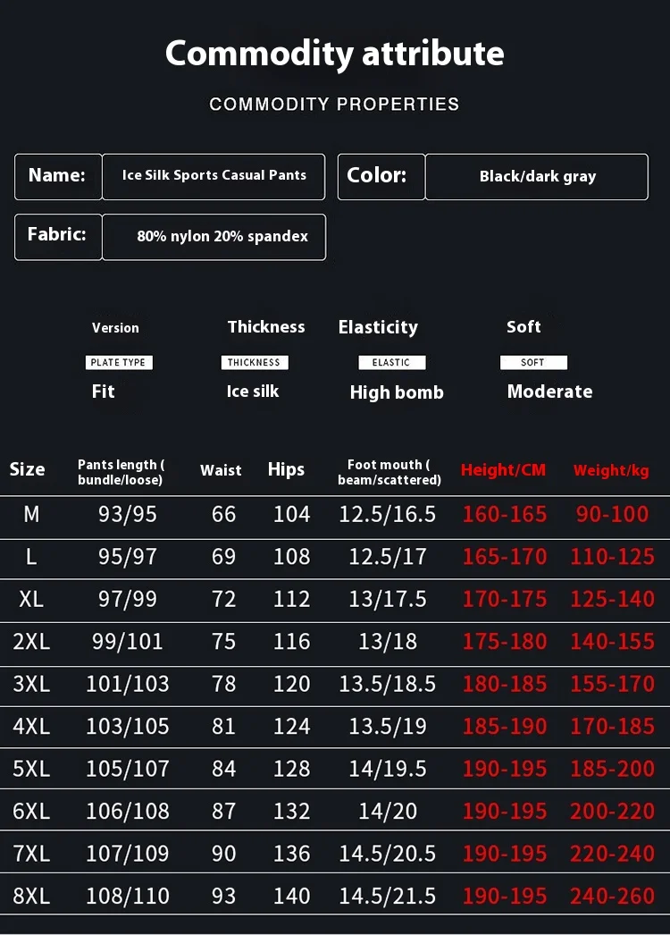 Men’s Lightweight Nylon Jogger Pants Cool Sun Protection Zipper Fly Comfortable Stretch Mid Flat Air Conditioning Long 6XL
